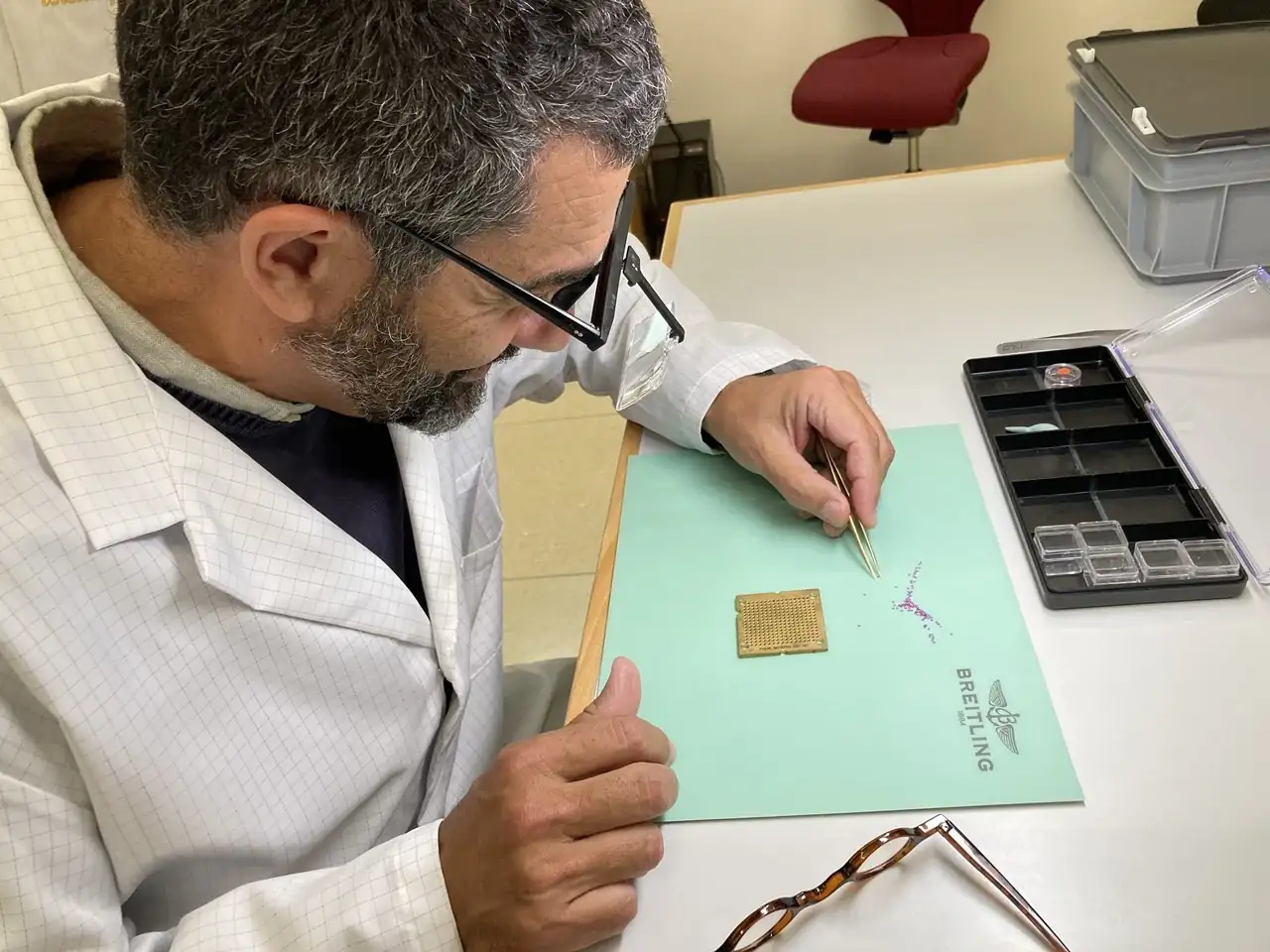 La-Chaux-de-Fonds es uno de los puntos más importantes del Suiza relojeramente hablando, a tiro de piedra -literal- de Le Locle, otro nombre mítico. Es aquí, en Breitling Chronometrie, donde se manufactura su calibre cronográfico B01 y trabajan unas 200 personas. El departamento de marketing, unas 80 personas, se ubica en Zurich, mientras que en Grenchen se encuentran los servicios centrales: diseño, ventas, servicio post-venta, expediciones... 600 personas en Suiza, y contando las distintas delegaciones y boutiques alrededor del mundo, trabajan para Breitling un total de 2000 personas.
