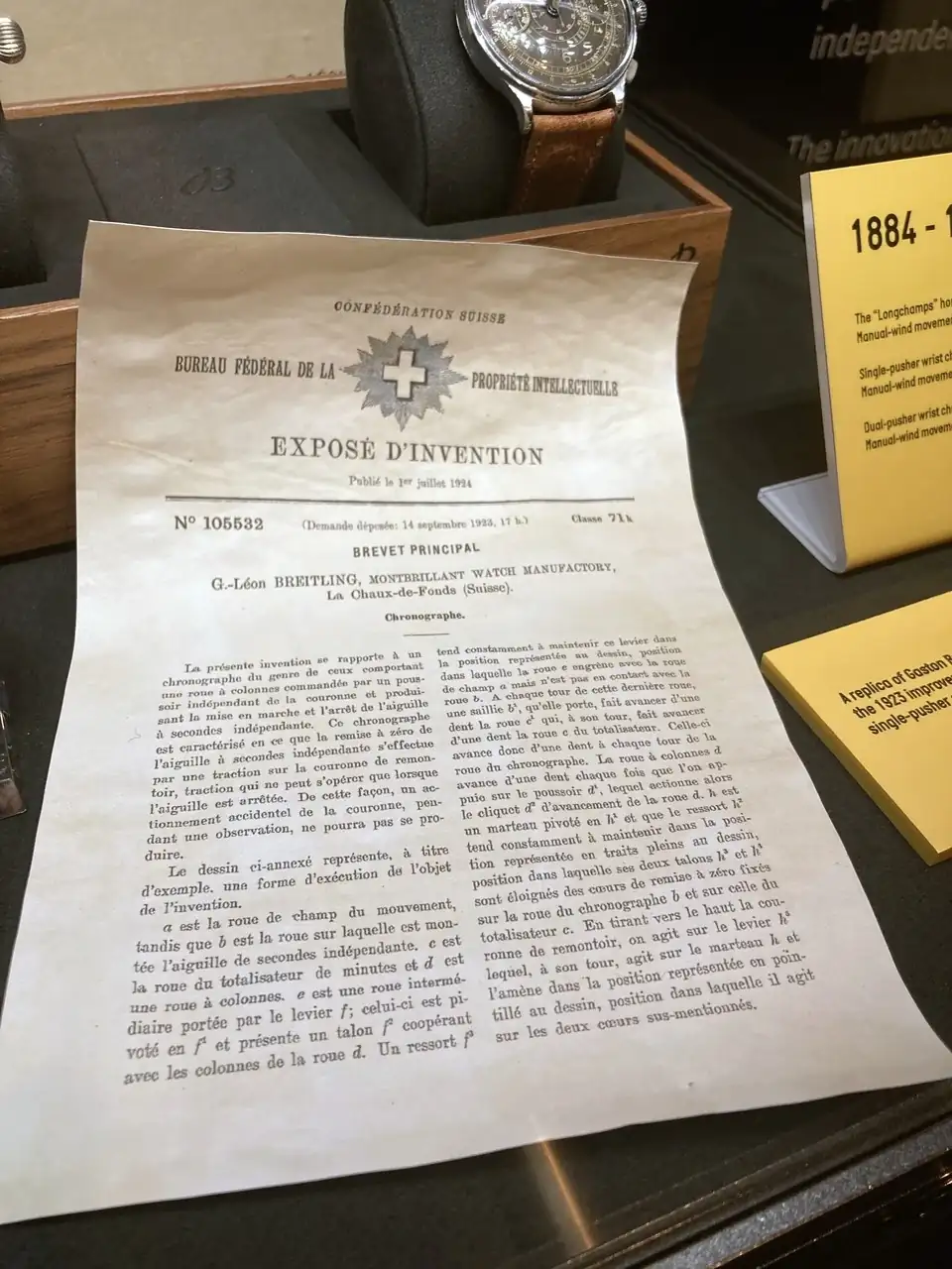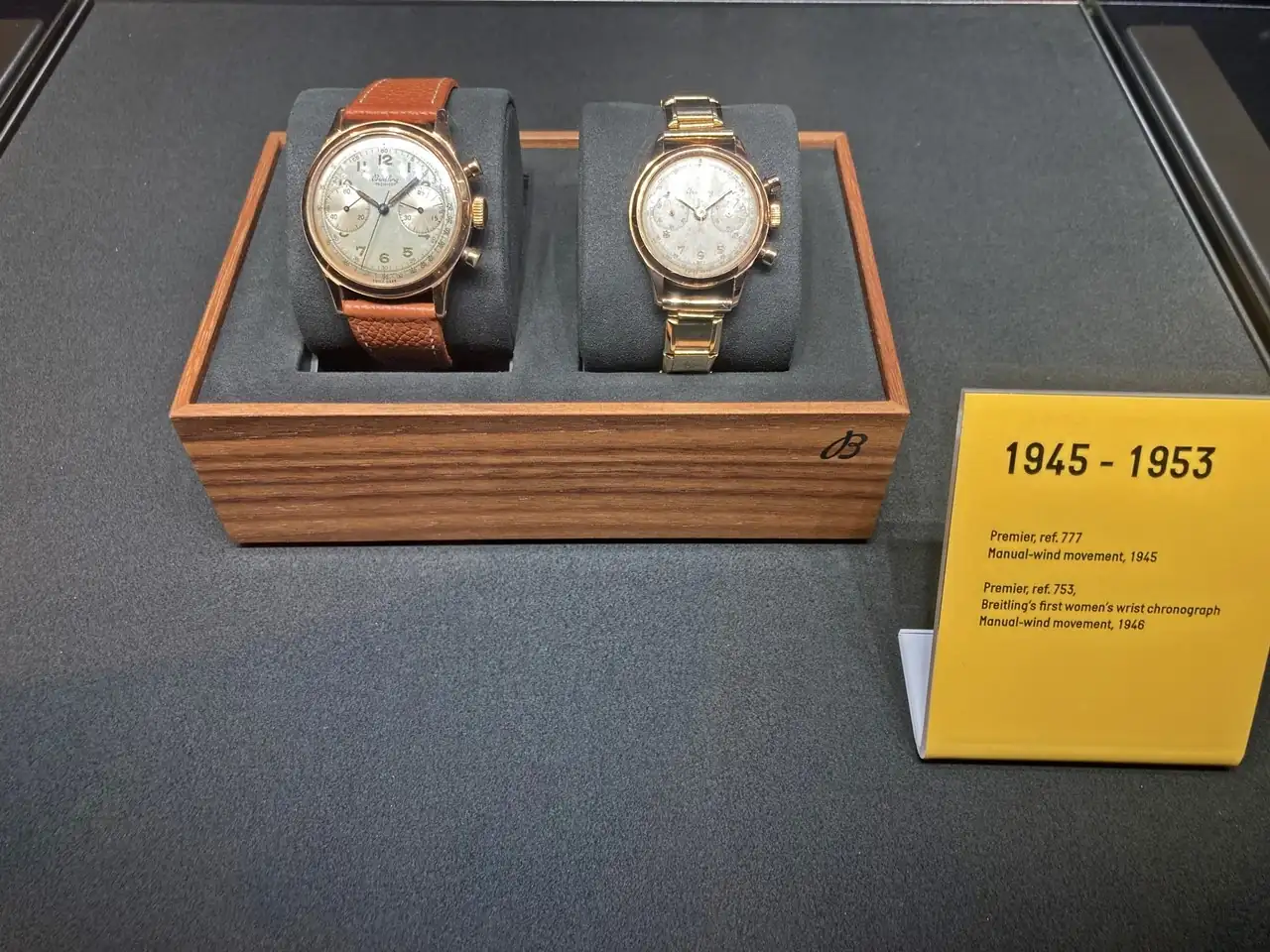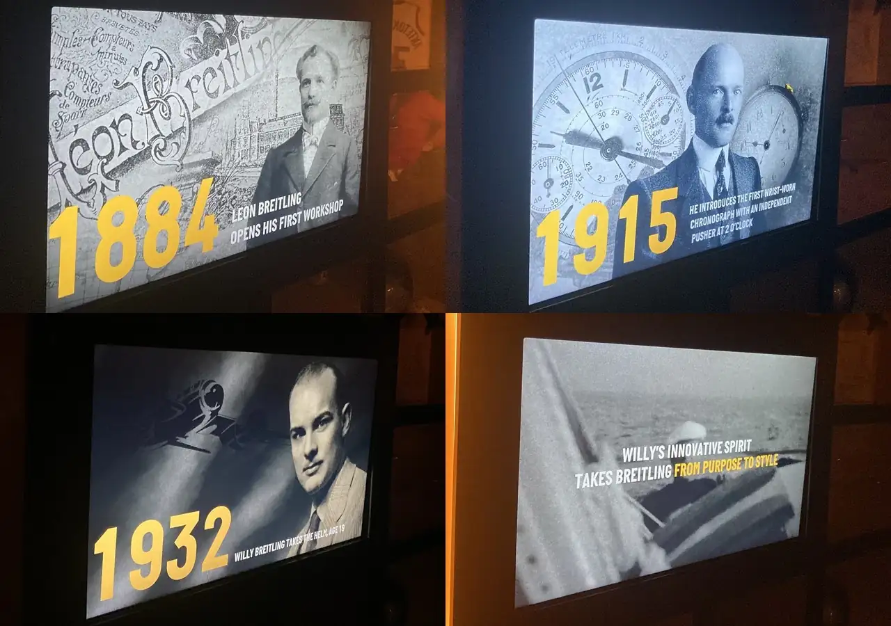 La exposición muestra numerosa memorabilia, como una copia de la patente del cronógrafo monopulsador registrada por Gaston Breitling o los primeros relojes Premier, que Willy Breitling diseño para salirse del puro reloj-herramienta. Un concepto que ha sido recogido por la nueva dirección de la marca y que parece estar dando excelentes resultados.