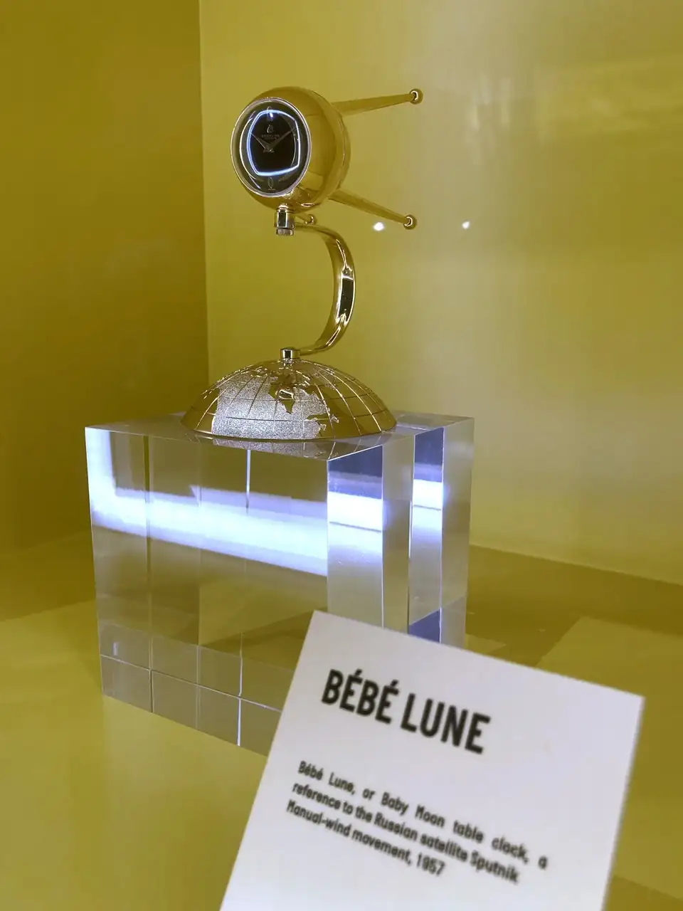 Vimos no solo modelos antiguos sino piezas verdaderamente raras, como este Bebe Lune de sobremesa inspirado por el Sputnik, por el que Willy Breitling sentía verdadera admiración.