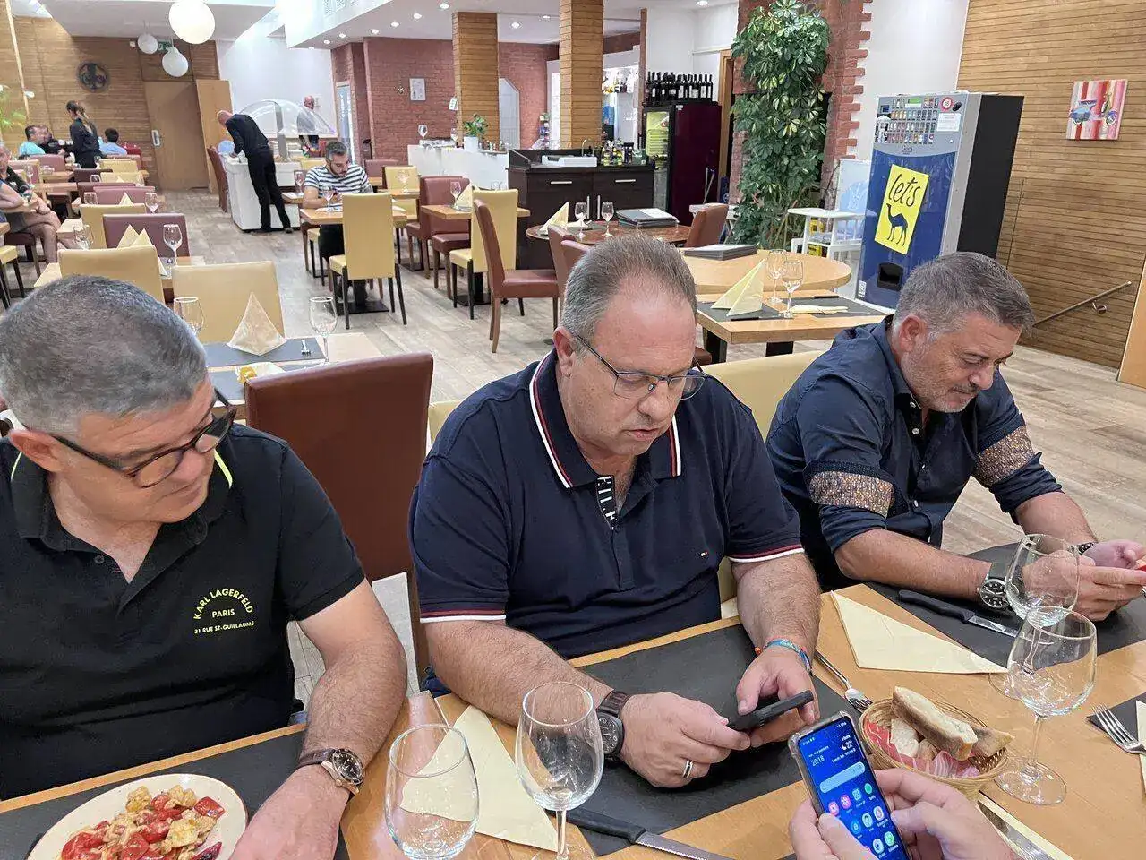 Día siguiente (después de una cena donde nos clavaron 10 eurazos por una botella de agua... y 5 por una jarra del grifo). Comentando la jugada durante el desayuno. "Déjame probar..."