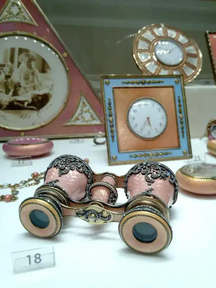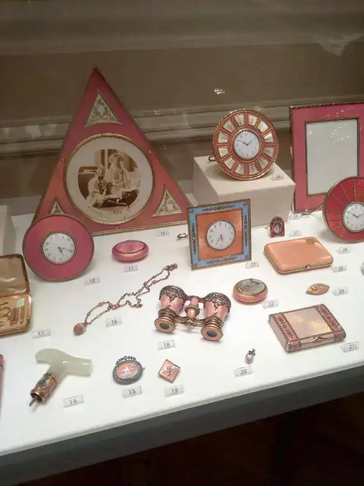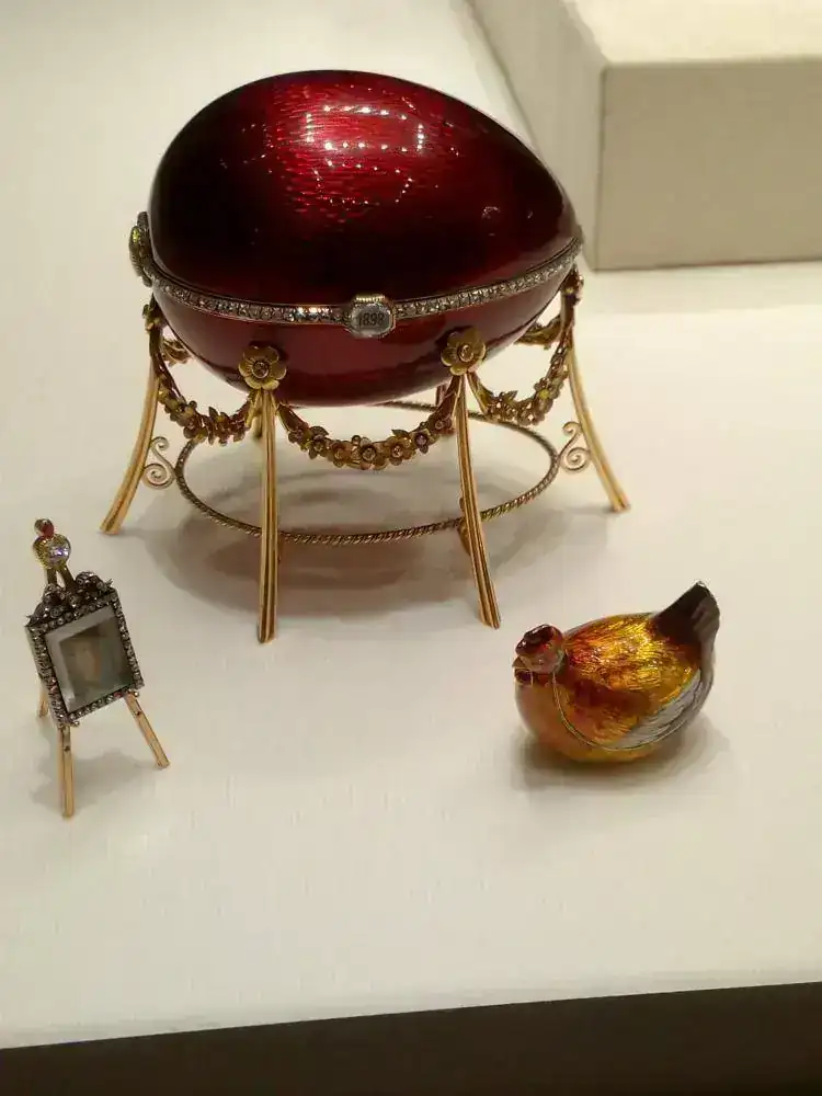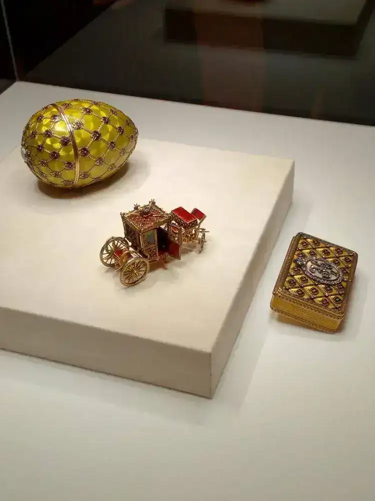 La figura principal del Museo son los huevos, algunos con reloj, y todo tipo de artículos al alcance de las clases más pudientes de la Rusia anterior a la Revolución. Mi impresión al menos con respecto a los huevos, es que alguno de ellos era tan caro, que sólo tenía dinero para pagarlos el Zar, y quizá ya era costumbre que los encargase el Zar.