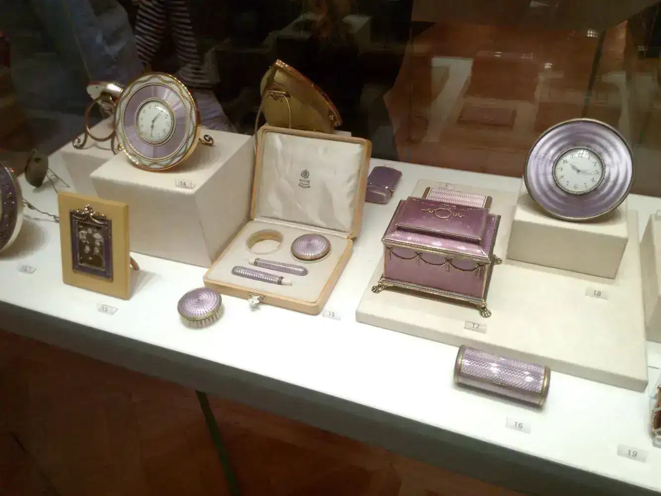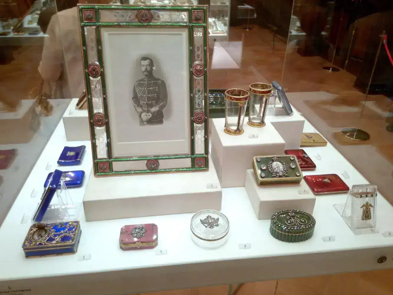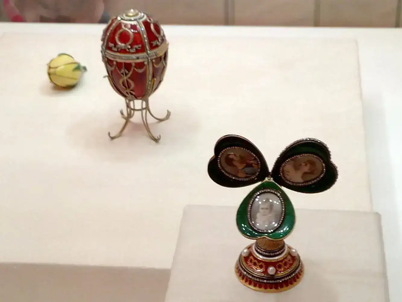 La figura principal del Museo son los huevos, algunos con reloj, y todo tipo de artículos al alcance de las clases más pudientes de la Rusia anterior a la Revolución. Mi impresión al menos con respecto a los huevos, es que alguno de ellos era tan caro, que sólo tenía dinero para pagarlos el Zar, y quizá ya era costumbre que los encargase el Zar.