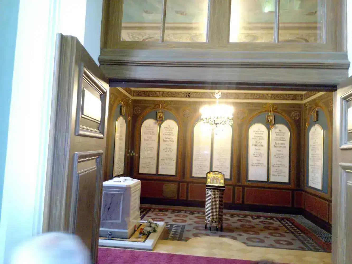Dostoievski fue exiliado a Siberia durante el reinado del zar Nicolas I, para mí, un personaje de lo peor de los Romanov y para la propia Rusia, quizá hasta con consecuencias nefastas para sus propios descendientes. Aunque las imágenes del último zar Nicolas II y su familia forman parte de objetos de culto en muchas iglesias, esta Sala apartada del resto de sus familiares en la Catedral de San Pedro y San Pablo, es el discreto destino físico actual de la última familia imperial.