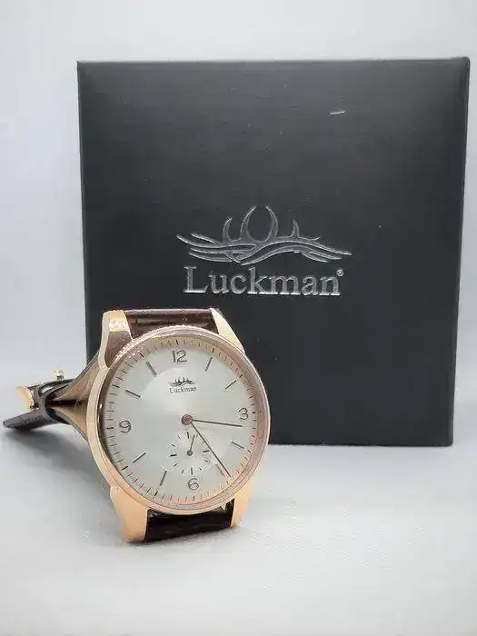 He visto en diferentes subastas de relojes vintage estos relojes de marca Luckman, que indican que son vintage de los años 90, con un calibre ETA 1120, que era usado en relojes DOGMA, CAUNY y otros similares en los años 50 y 60 con un diámetro de unos 38 mm.