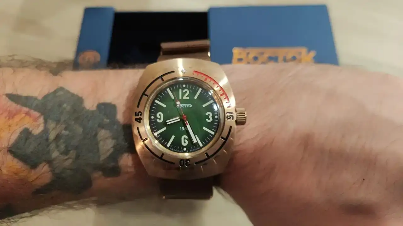 Felicidades por ese 1967 en bronce, muy bonito con el dial verde y con el burdeos también. Vostok lo ha bordado y encima a un precio bastante asequible.