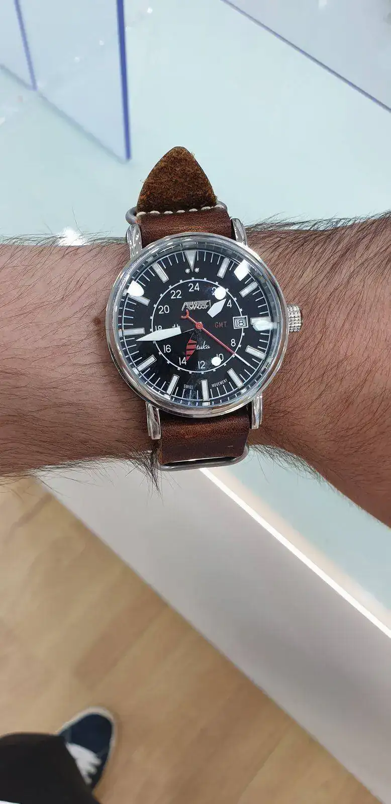 Hola a todos. Estaba esta tarde dando una vuelta cuando he entrado a una joyería. Y he visto esta marca de relojes. Fabrican relojes con temática guardia civil, policia nacional... y he visto uno que me ha gustado bastante. El AVIADOR Stuka AV-1066-NPM. Son movimientos de quarzo suizo, pero no se ni cual, ni si son buenos...y por eso vengo aquí. A ver que opinión tenéis de estos relojes. Os adjunto foto del reloj.