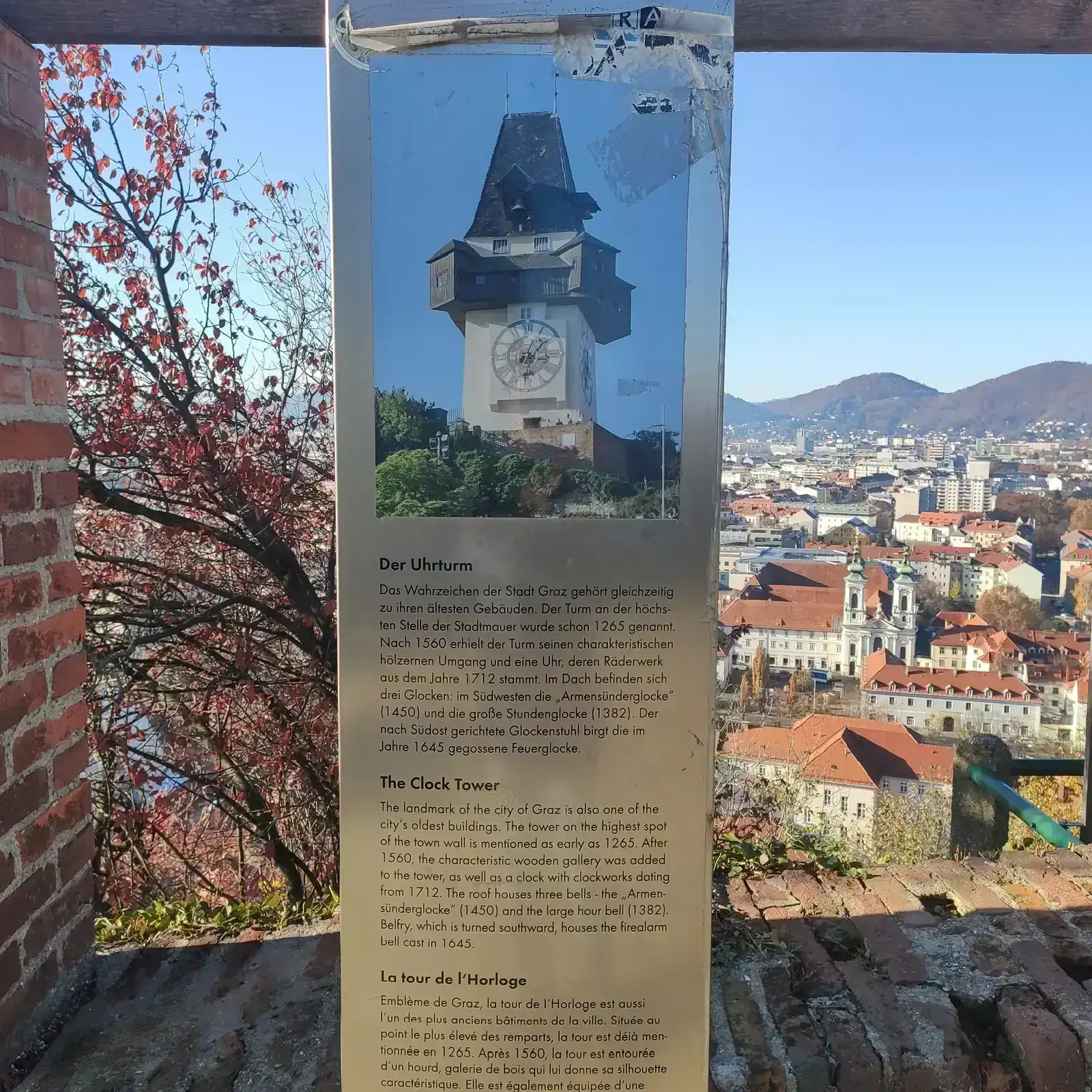 Empiezo con Graz (capital de Steiermark, Austria) y su famosa Uhrturm o torre del reloj que domina la ciudad y símbolo de ésta, con sus esferas de 5 metros de diámetro: