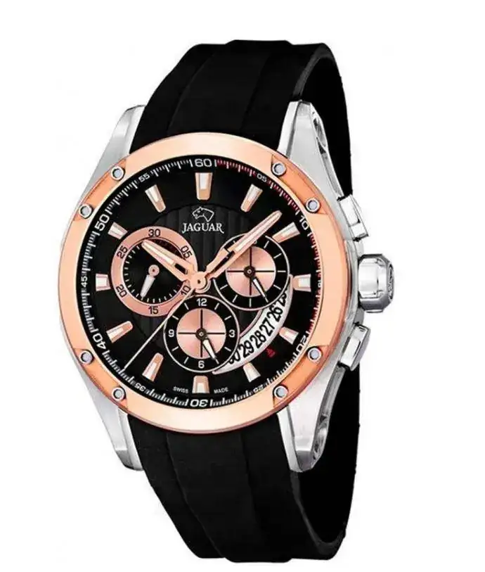 Si no recuerdo mal la marca Jaguar tiene relojes de este estilo. éste no es todo dorado pero tal vez haya alguno. También puede que encuentres algo en Festina (del mismo grupo que Jaguar)