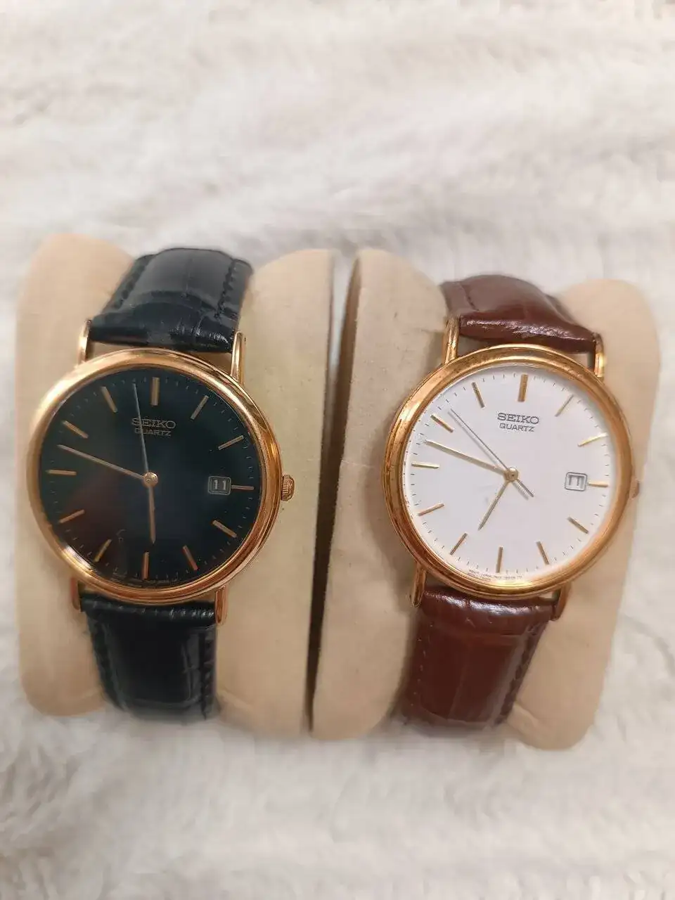 seguimos con dos cuarzos muy especiales de 33mm, uno me lo cedió mi padre el otro de dial blanco es mío desde pequeño, ambos comprados el mismo día uno para mi padre y el otro para mí, lo cual me hizo mucha ilusión ya que desde pequeño me volvían locos los relojes y el hecho de tener una pieza similar a mi padre me hizo sentir mayor en ese momento,