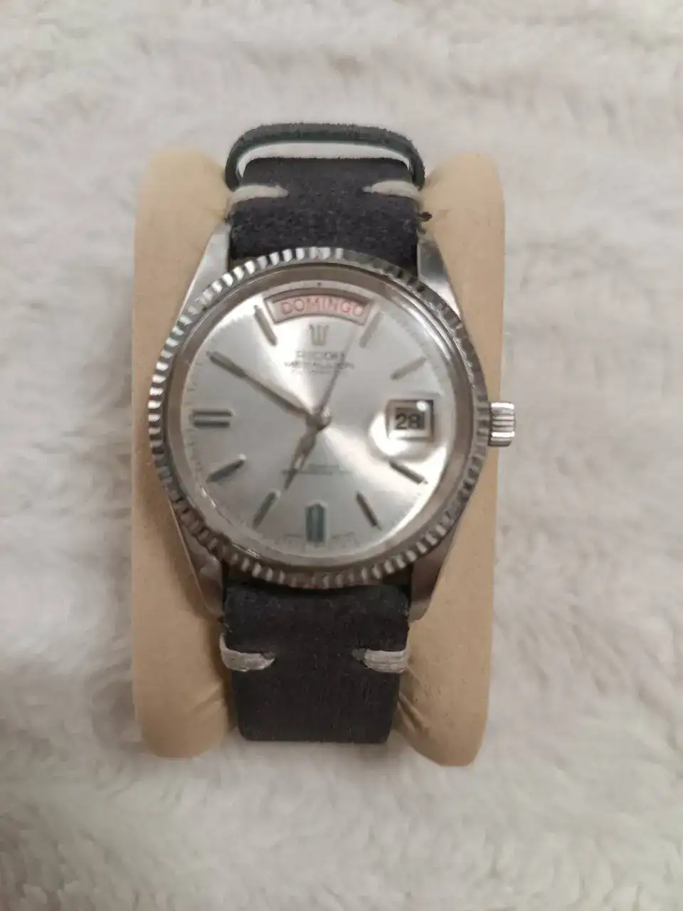 Me gustan los relojes de tamaño comedido (39 mm ó menos), y no me asustan los 34-35mm… Me gusta ese Vimat, y con el intangible añadido de ser el reloj de tu abuelo… insustituible. Muy chulos también los cuarzos Seiko (qué buena historia, más intangibles), los Seiko 5, el Sicura jump hour… ¡Enhorabuena!