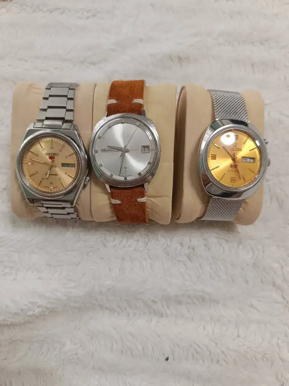 tenemos este trío de dos Seiko 5 y sportmatic y este Ricoh serie 9 de 36mm los 3