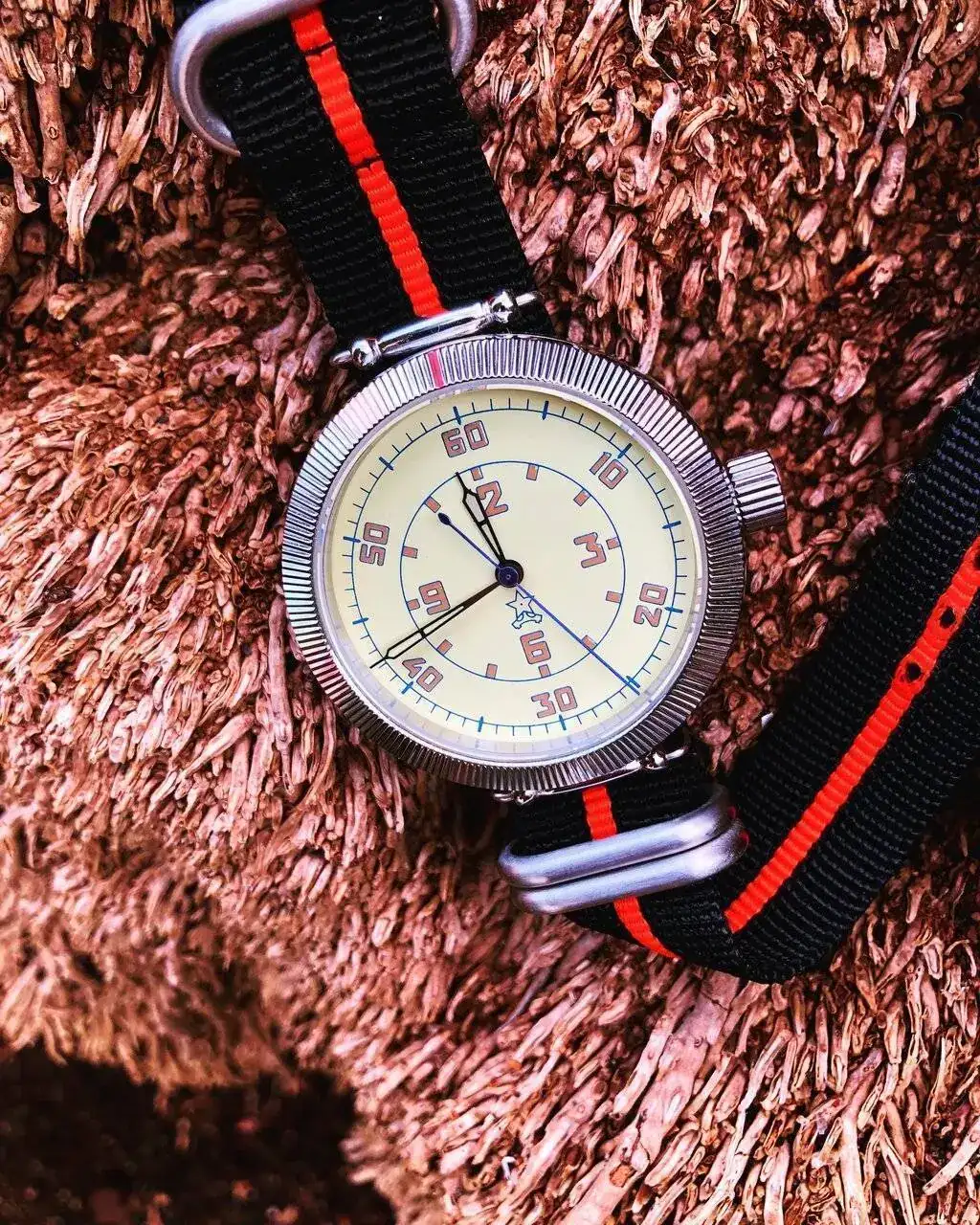 Complicada adquisicion, pero valio la pena.Esta reedición de un reloj de piloto soviético procedente de un foro ruso con una gestación un tanto tormentosa. Me enamoré de él y al final lo conseguí en una subasta en eBay.