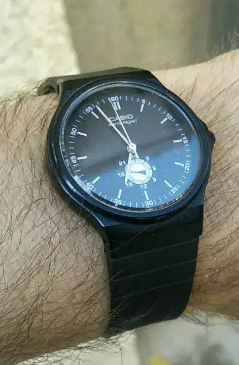 Acertaste, creo que no lo hemos visto.Supongo que relojes raros tenemos todos. Os pongo este Casio MQ-55 de principios de los 90 que tiene una curiosa y poco últil subsefera de 24 horas. No he visto ningún otro igual.