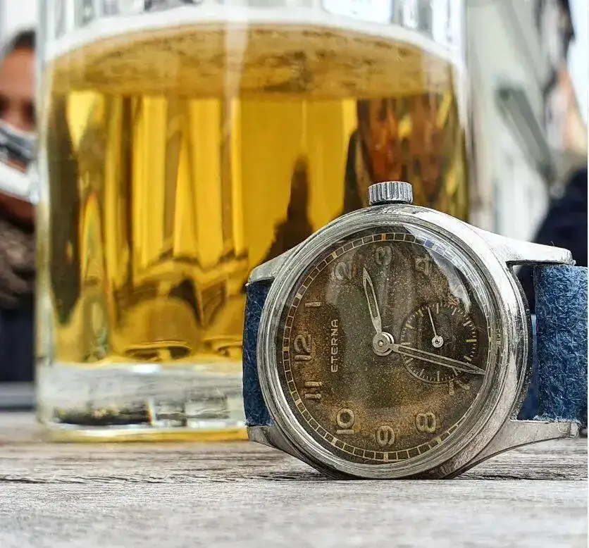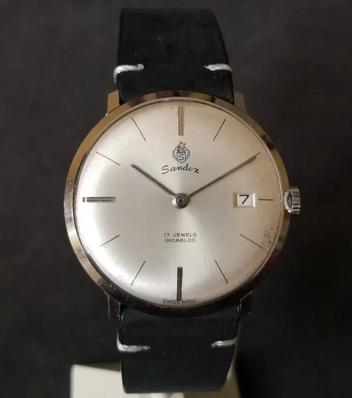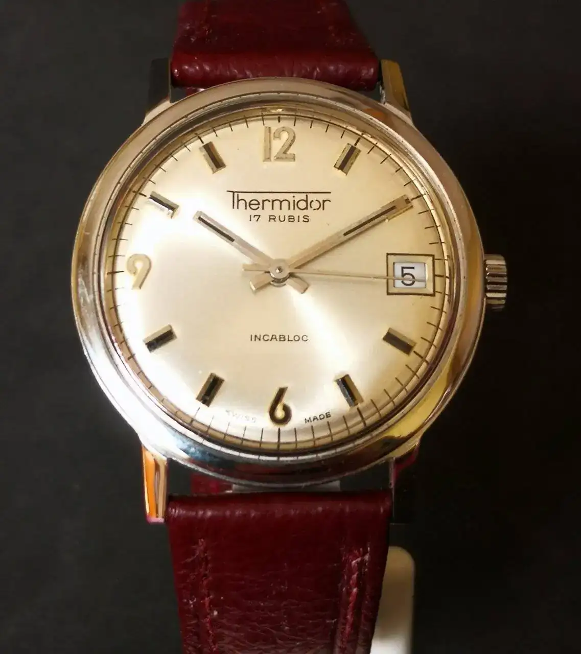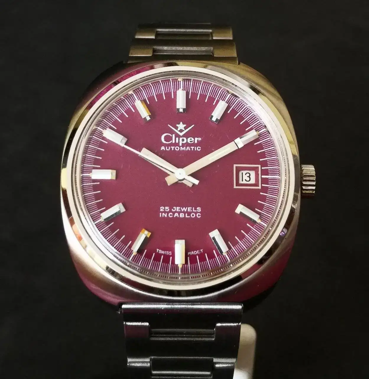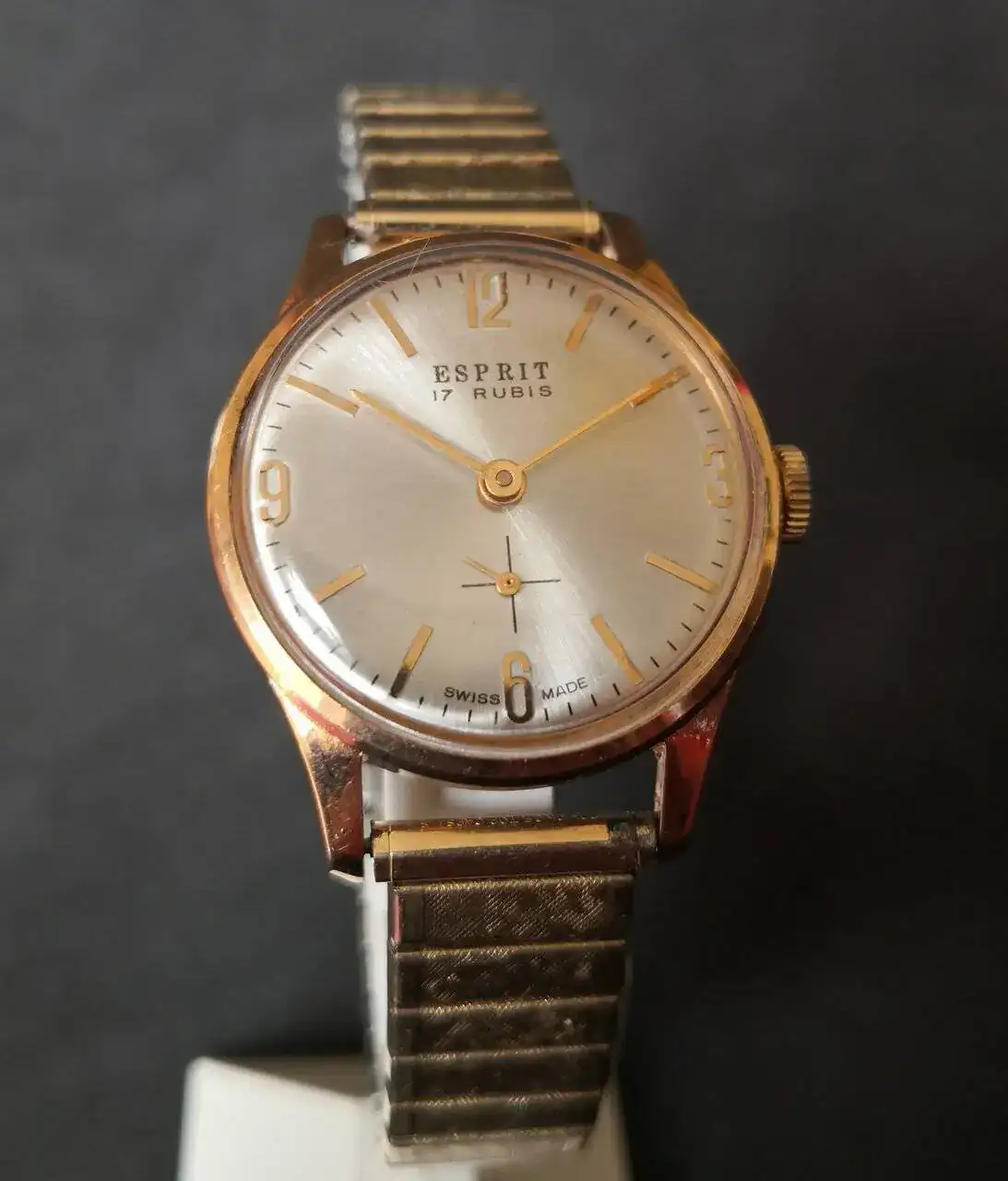 Aquí quizás el más curioso de mi colección. Perteneció también al abuelo de mi marido. Un Antic de luxe (se ve que esta coletilla les daba más caché a los relojes de antes) automático. Lo que hace especial a este modelo es su armis integrado en el reloj. No se puede ajustar ni cambiar. Es como una plancha metálica con un caucho pegado por debajo. Su esfera es de lo más cutre que he visto... Es de esos relojes que de feos que son me gustan y hacen gracia 😂