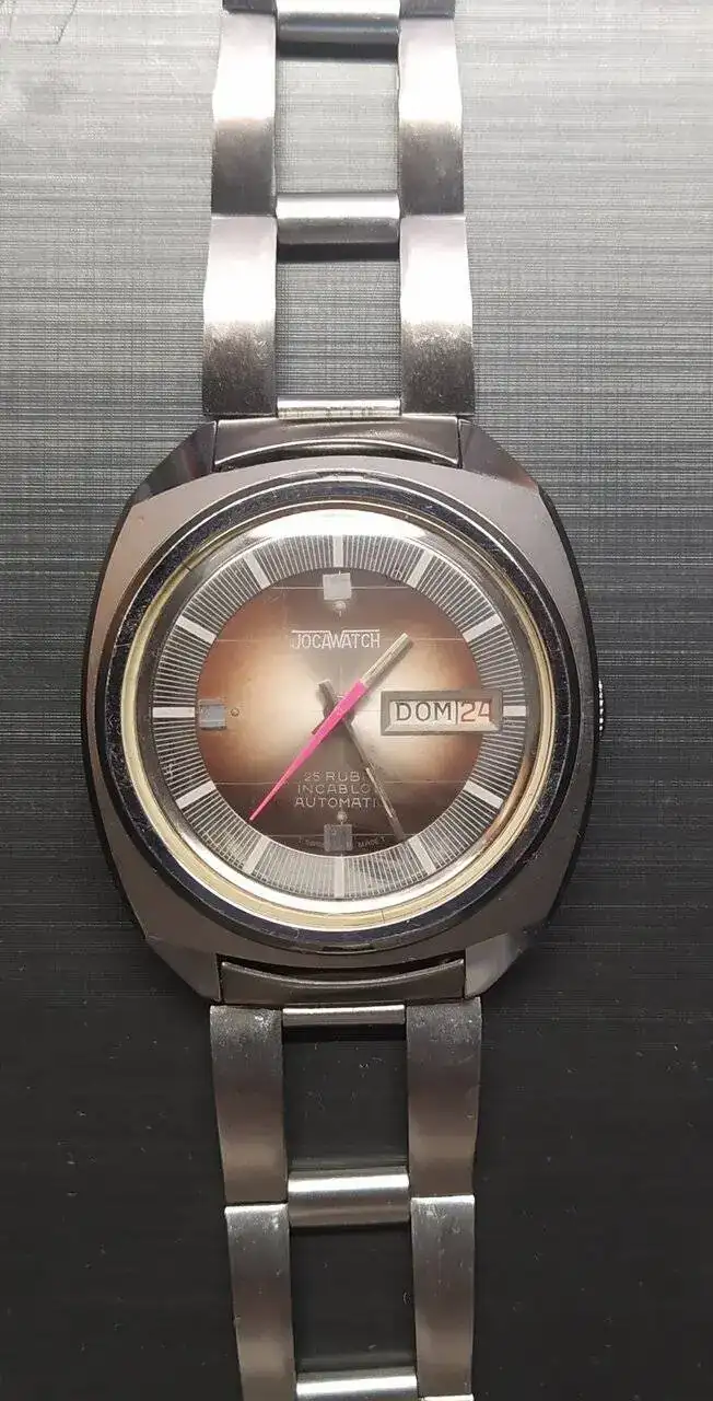 En tercera posición uno de mis viejitos favoritos (si no el que más). Un Jocawatch automático con esa segundos Rosa fluorescente y esa caja tipo tortuga que me flipan y ya no hablamos de ese armis😍.