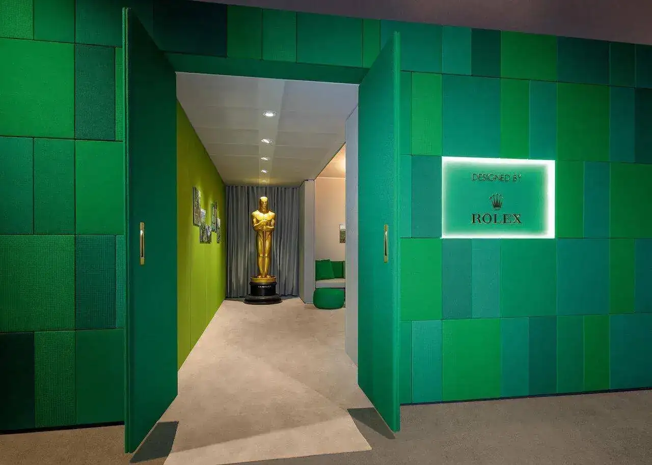Rolex siempre ha mantenido una relación muy estrecha con el mundo del cine. Como ya sabemos sus relojes han interpretado su propio papel en las muñecas de personajes míticos de numerosas películas, algunas de ellas oscarizadas en su momento. Por ello, Rolex ha estado organizando la Greenroom de los Premios de la Academia desde 2016 y cada año la viste este espacio VIP entre bastidores en el Dolby Theatre de Los Angeles con un diseño personalizado. La sala es un lugar de confraternización donde