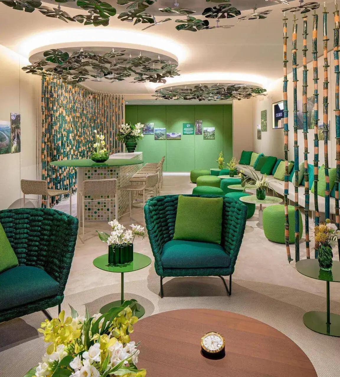 La Greenroom es una experiencia inmersiva para la cual cada año Rolex diseña una decoración original y temática. Por ejemplo, en el 2022 estaba inspirada en Hollywood y sus estudios, rindiendo un homenaje a la alianza entre el cine y el arte de la relojería. Un mural estilo art déco convertía diferentes elementos de los relojes Rolex en mosaicos que reproducían el skyline de la meca del cine: Los Angeles. Una oda al arte de la relojería en forma de elementos decorativos como índices, agujas y biseles estriados que simbolizaban conocidos escenarios del mundo del cine como Hollywood