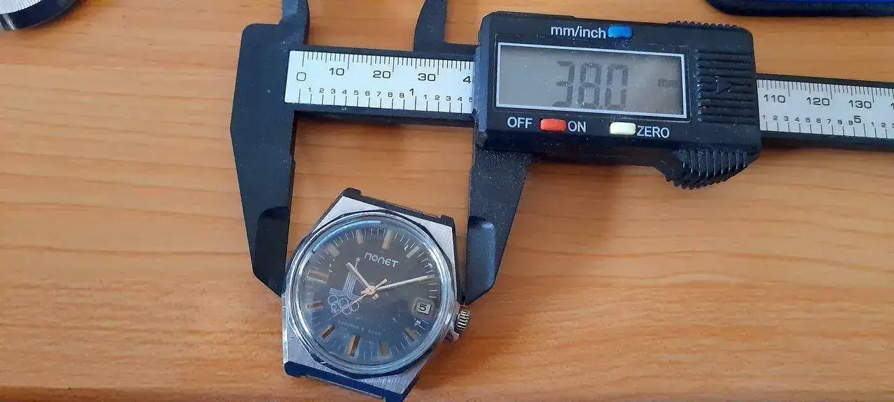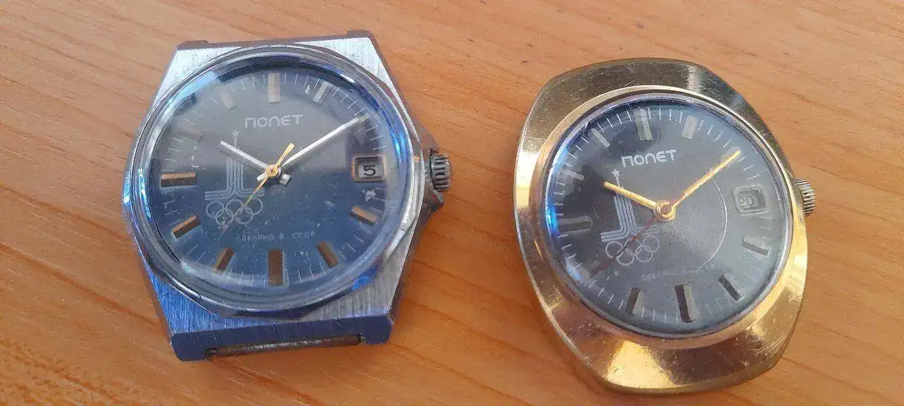 - Poljot (Полет). Su hermano “rubio”. Básicamente, mismas características. El azul del cuadrante algo más saturado. Caja ovoidal. Tiene la particularidad de llevar grabado en un lateral las micras del baño de oro (Au10 -es decir, 10 capas-), supongo que de 14 o 18 Kts. A este detalle los rusos prestan mucha atención en las ventas (p.ej. Редкие Механические часы СССР Ракета ОЛИМПИАДА 80 !!! Позолота 10 микрон !!) y creo, tienen prohibida su exportación.