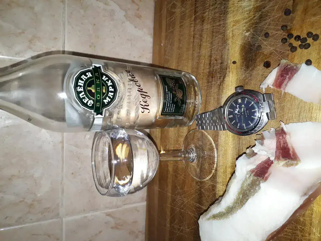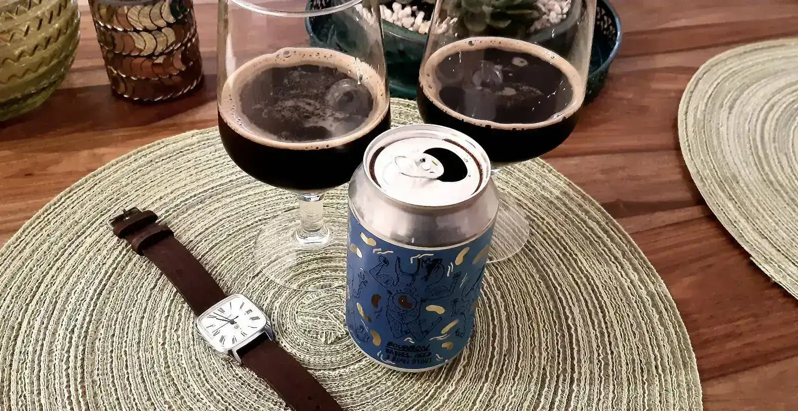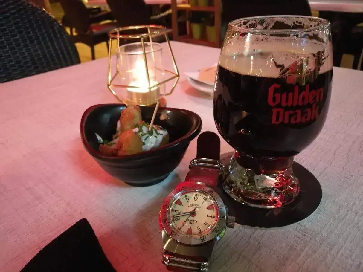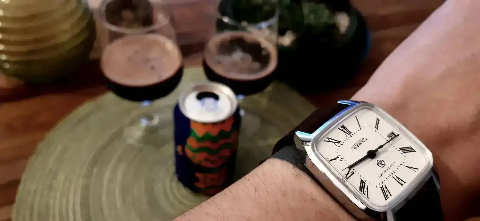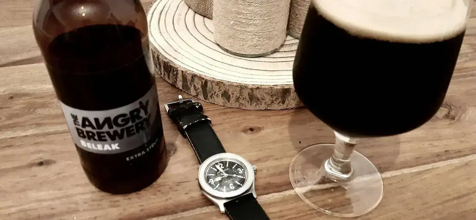Por lo tanto en esa foto aparece una cerveza hecha por mi, en una copa hecha por mi, junto a un reloj hecho por mi.