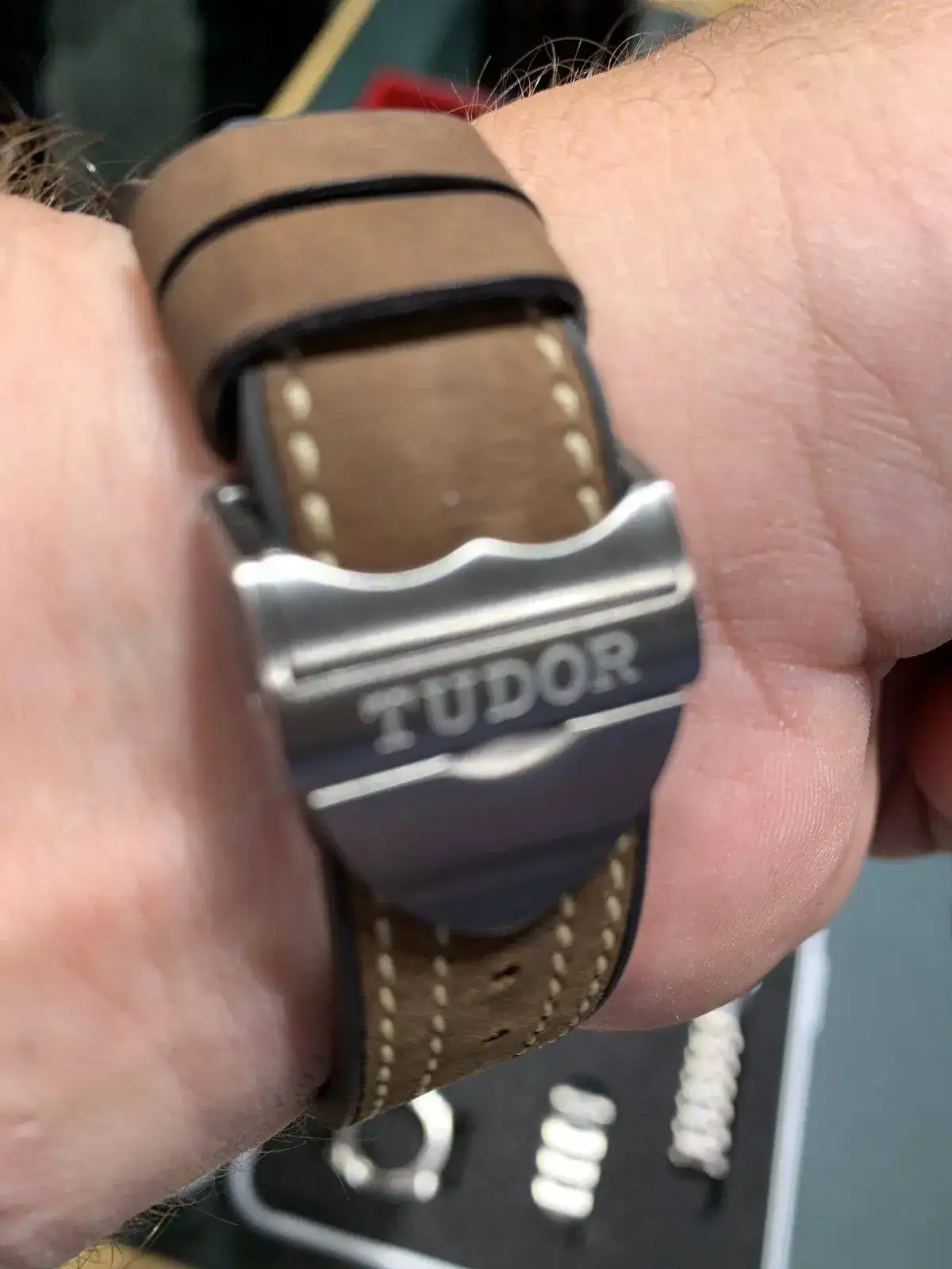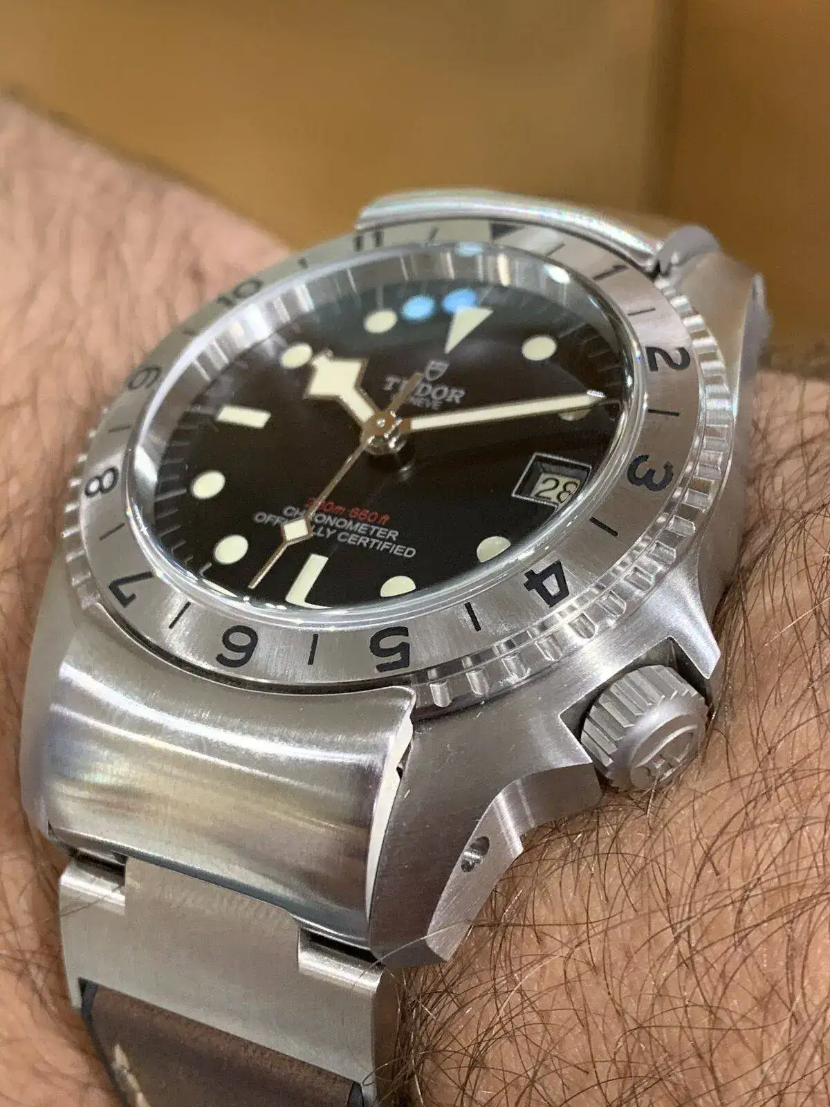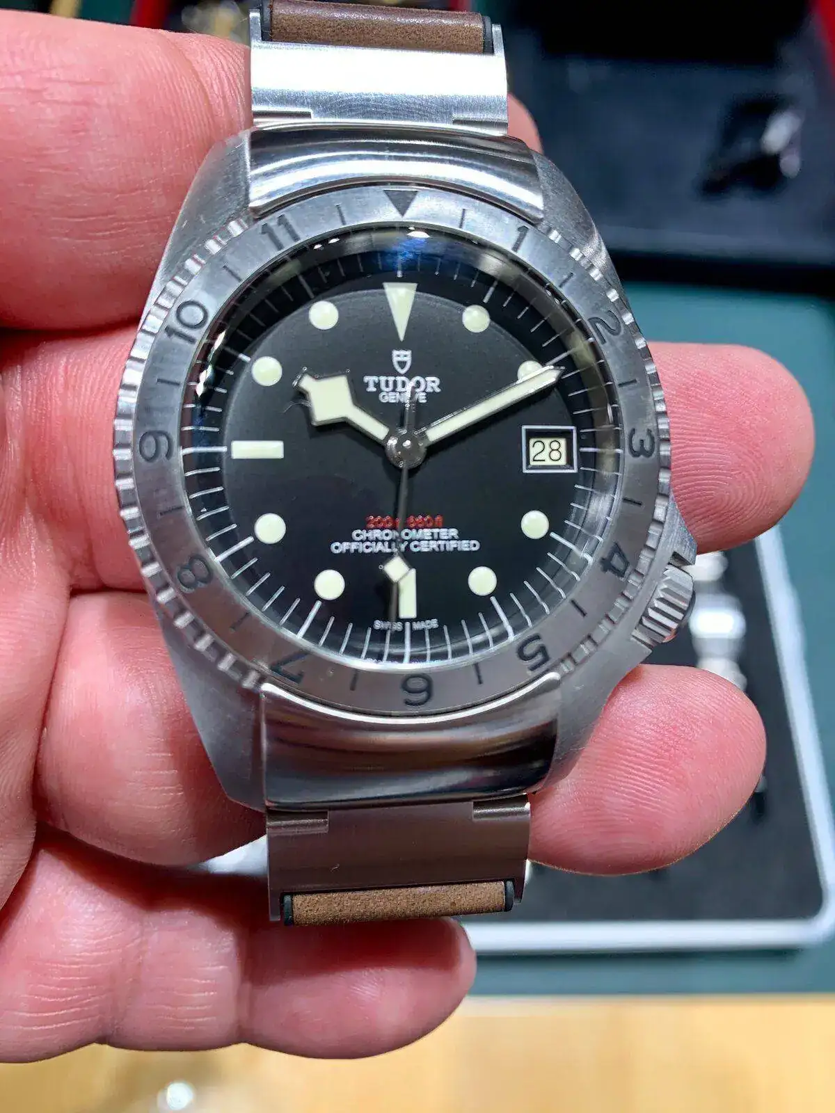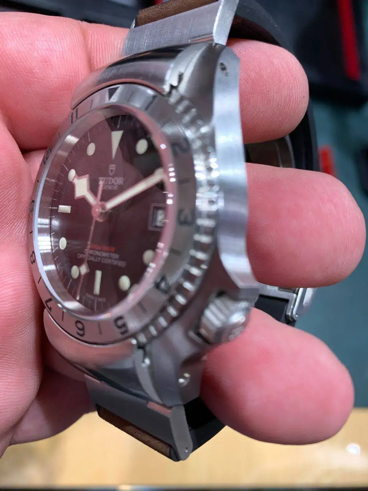 Tudor black bay bronce con las inmóviles agujas en la posición típica pese a la corona roscada….