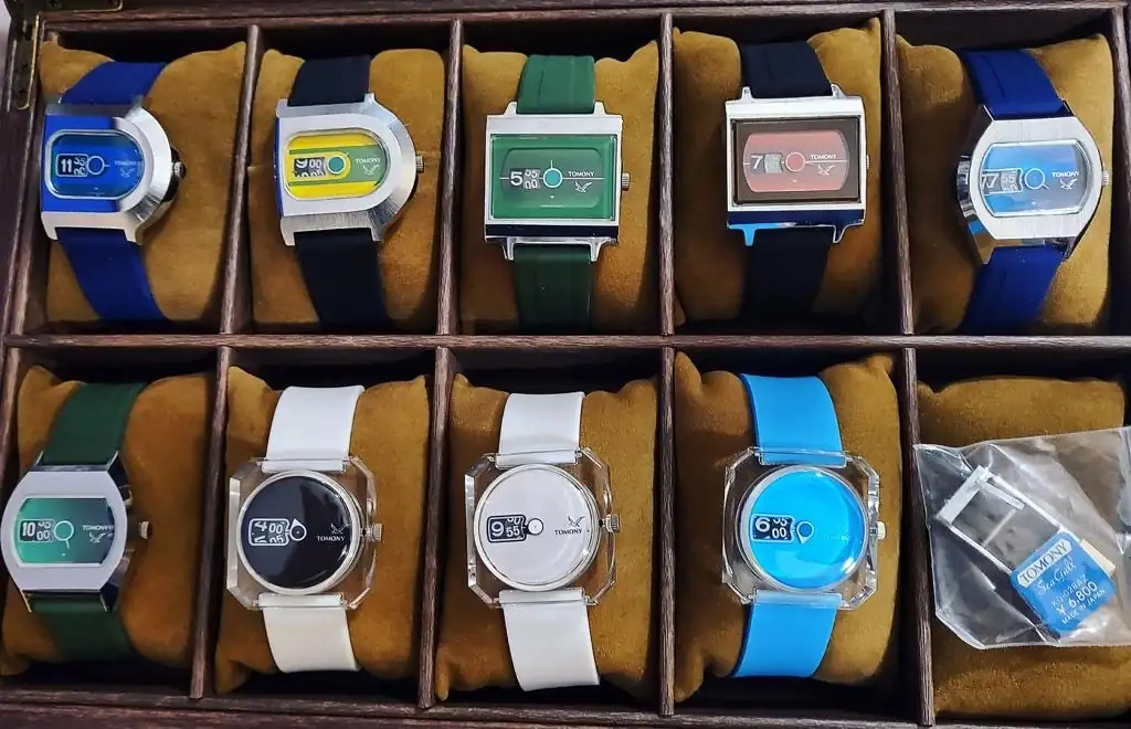 os pongo aquí unos Tomoni de Seiko solo se fabricaron en 1977. Estos jump-hour se diseñaron para captar el mercado joven de la época.