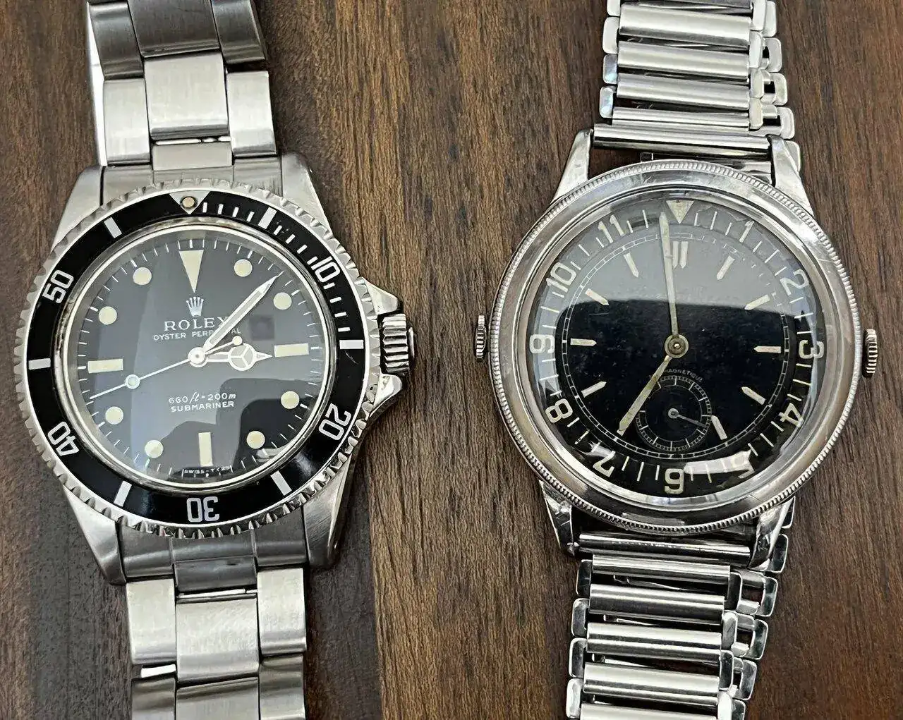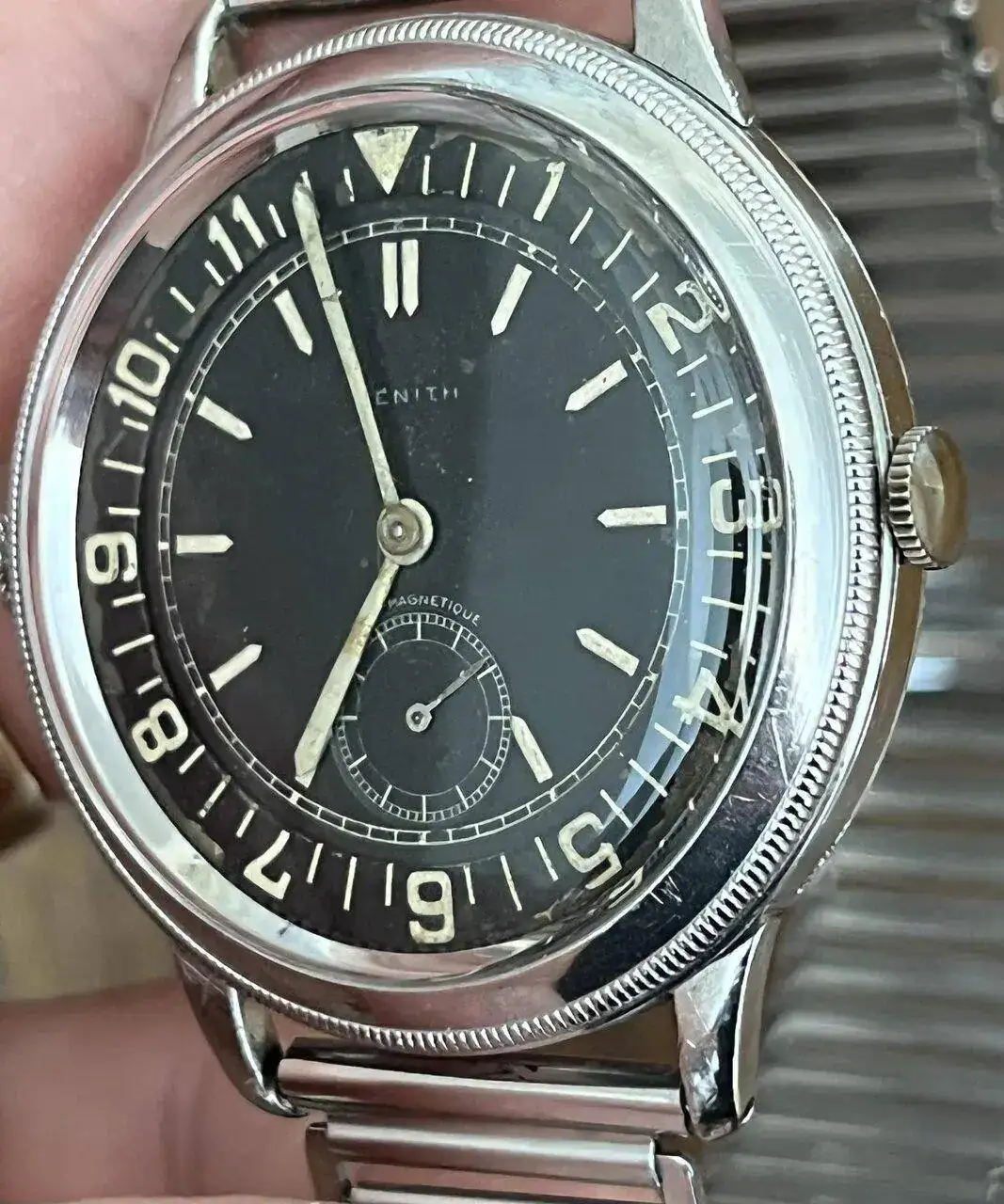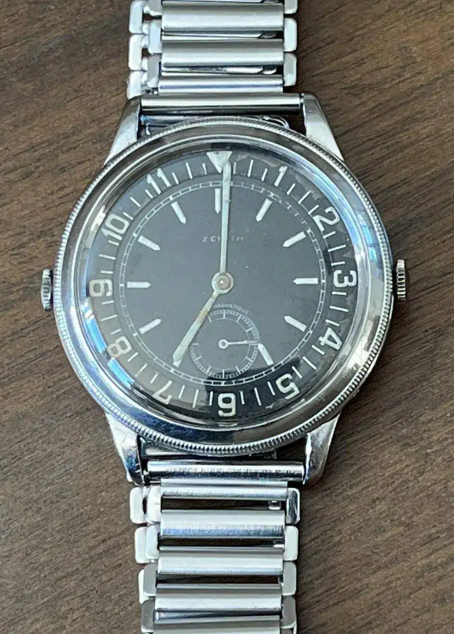 Pues pensamos que es un reloj "Fake" montado con piezas, aunque ya de entrada nos sorprende que esa caja de acero de 41 mm se hiciera en ese año. Y desde luego nos admira de donde coño habrán sacado ese dial y bisel interior giratorio.... También le damos mérito al que haya elaborado ese lumen con radium envejecido.