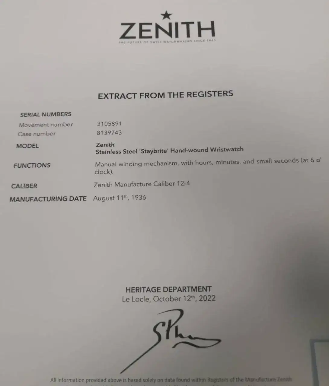 Zenith 12-4, marcado 3.105.xxx, como el número grabado en el interior de la tapa marcado 8.139.xxx, corresponden al año de 1936 ?
