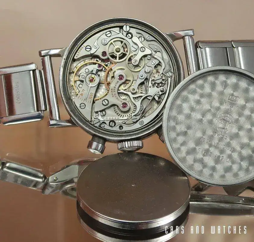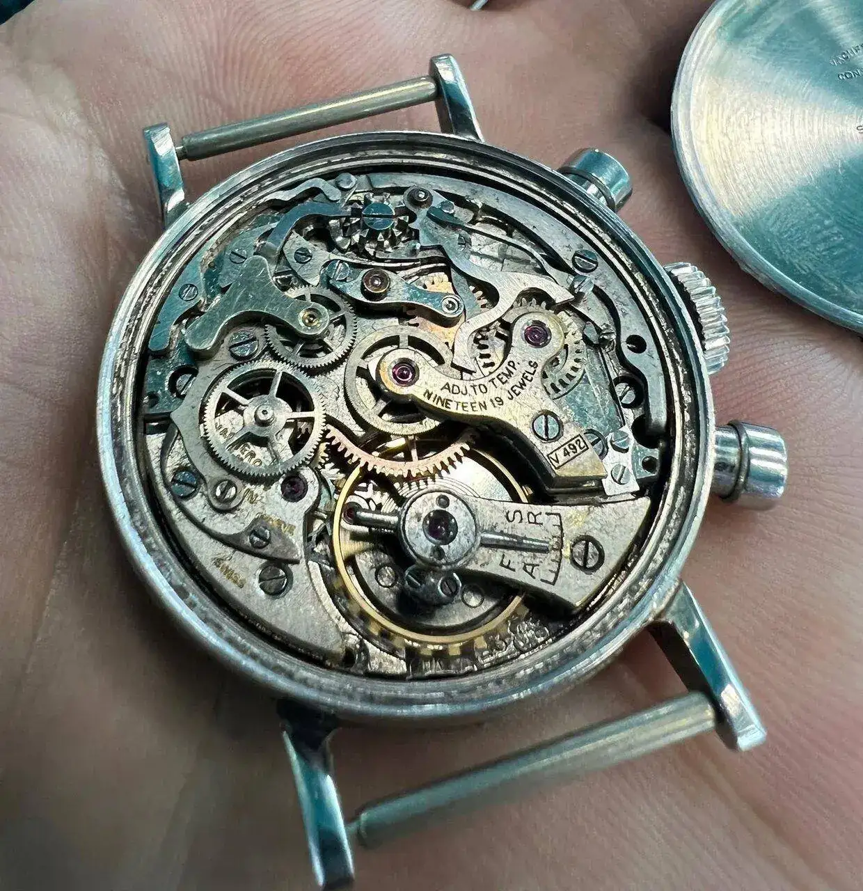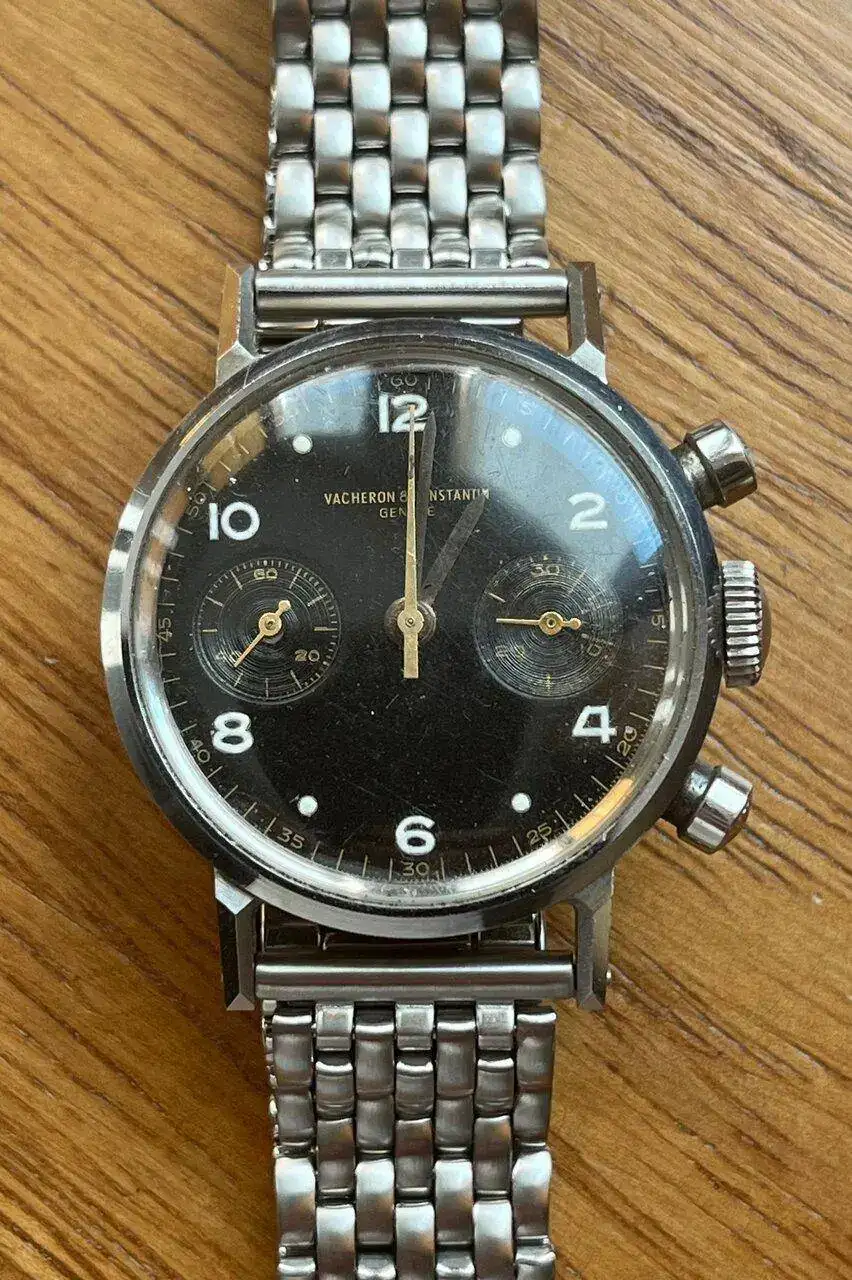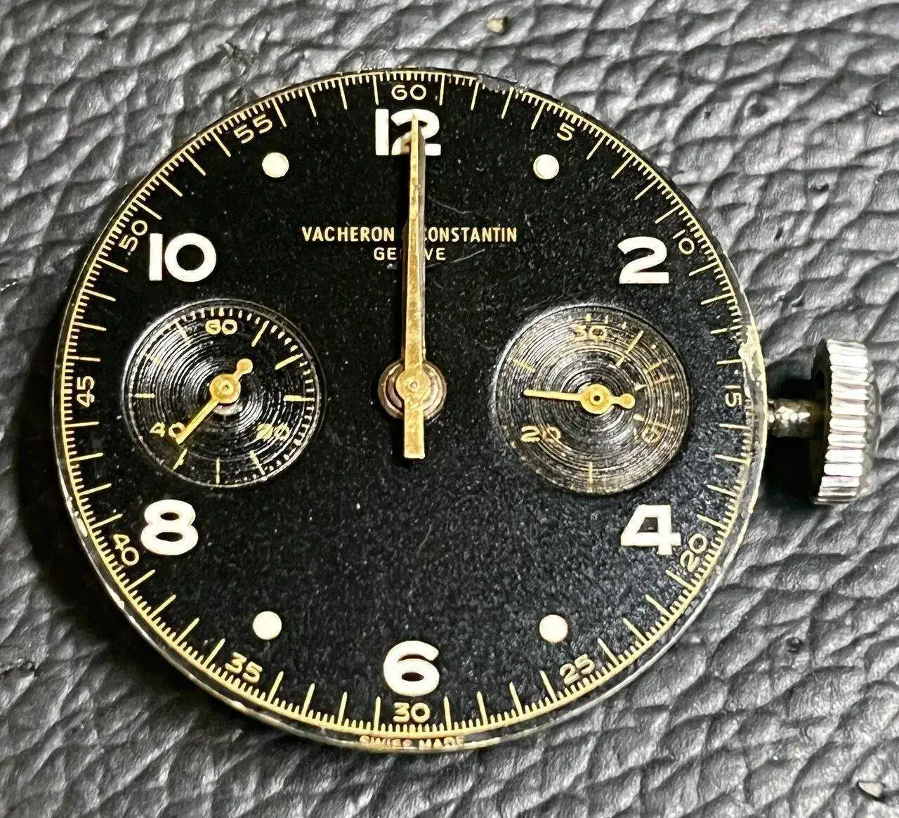 Aludes a la foto de V&C, pero para compararlo con esa foto de V&C, habría que tener varias cosas en cuenta, lo primero ¿cuando se hizo la foto? porque si la foto se hizo en los años 40, pues hablamos de que el reloj se fotografió cuando era nuevo, no tras haber transcurrido 80 años por dicho reloj como sucede con el tuyo, además en una foto en blanco y negro dificilmente se puede saber el tono real de esos números. Por otro lado, si seguimos comparando tu reloj con el de la foto, yo les encuentro muchas diferencias: la caja es completamente distinta, los pulsadores son distintos (y de caras planas no labradas), la corona es distinta ( más ancha y con cara plana no abombada), las manecillas son completamente distintas (y fijándome más en el eje de las menecillas, en la foto parece que ese reloj no montaba trotadora central de segundos del cronógrafo, o al menos no parece que la lleve, aunque no se vé nada bien la cosa), las 2 subesferas a las 3hrs y a las 9hrs también son distintas (de mayor diámetro en la foto de V&C que en tu unidad) y más pegadas a los números 2-4 y 8-10 que hacen de índices, números que a su vez también son de una grafía distinta (los de la foto son más altos/estilizados); tampoco el perímetro impreso externo de la esfera para los seg/minutos es igual, ya que el de la foto parece ir rematado con 2 círculos concéntricos (uno externo y otro interno) y no parece llevar marcas para la subdivisión de segundos (aunque esto último ya es aventurarse demasiao porque no se vé nada bien la cosa), mientras que en tu unidad, únicamente lleva un círculo externo (no lleva otro concéntrico interno) y si lleva subdivisión de segundos....en fin, que yo encuentro 2 relojes muy distintos entre el de la foto de V&C y tu unidad, con esto no digo que tu reloj no sea 100% original, pero de serlo, son visibles muchas diferencias respecto al de la foto, vamos que no me parecen la misma referencia de reloj, o a lo largo de su vida fue modificado en varias cosas, pero no por V&C sino por terceras partes.