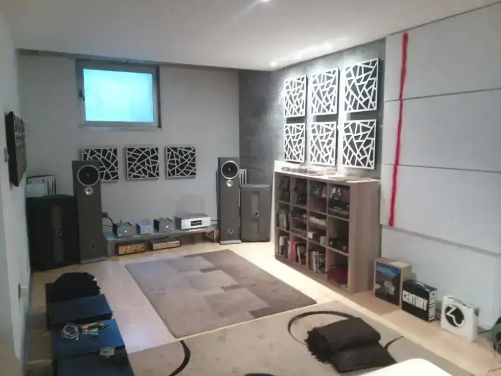 Estos son Audio Physic, agudos y medios con MC275 y graves con Goldmund. Al estereo, se le unen tres, central y dos traseros para cine.