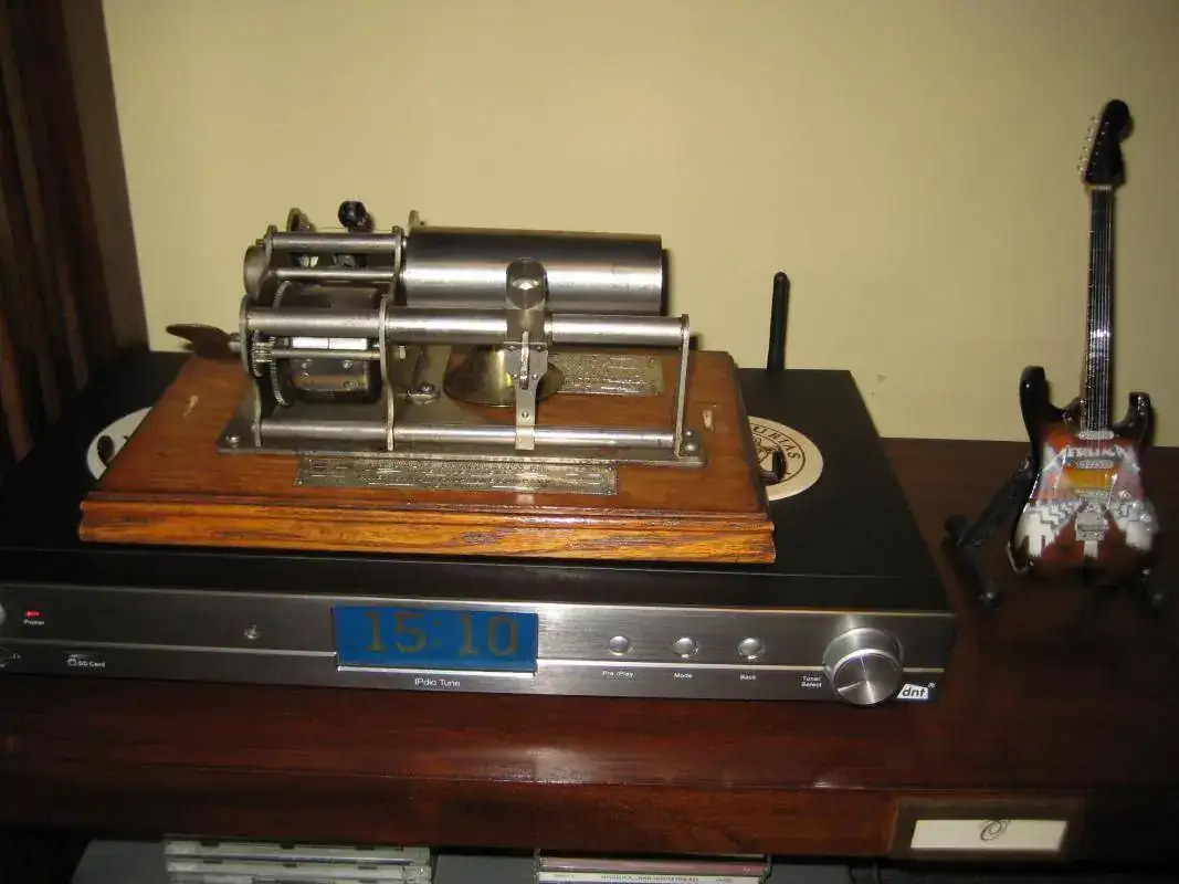 Aquí con el equipo de alta fidelidad de mi tatarabuelo: Un fonógrafo de 1890 Columbia rescatado por mi padre del desván de la casa familiar y que me regaló a mí hace muchos años. Todavía funciona.