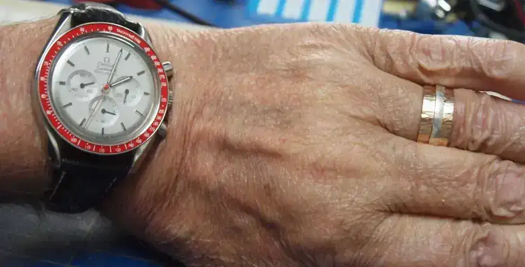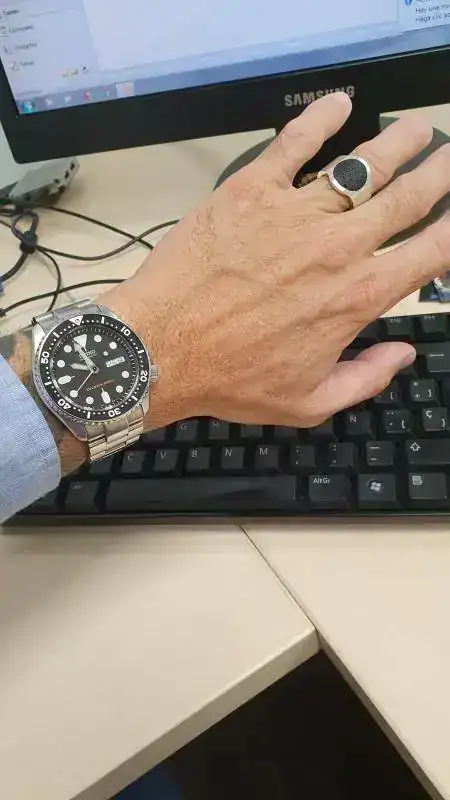 Ahí va mi skx con superoyster junto a mi anillo( uno de ellos) ,regalo de mi mujer por los 42 años, de plata y piedra volcánica de Fuerteventura.