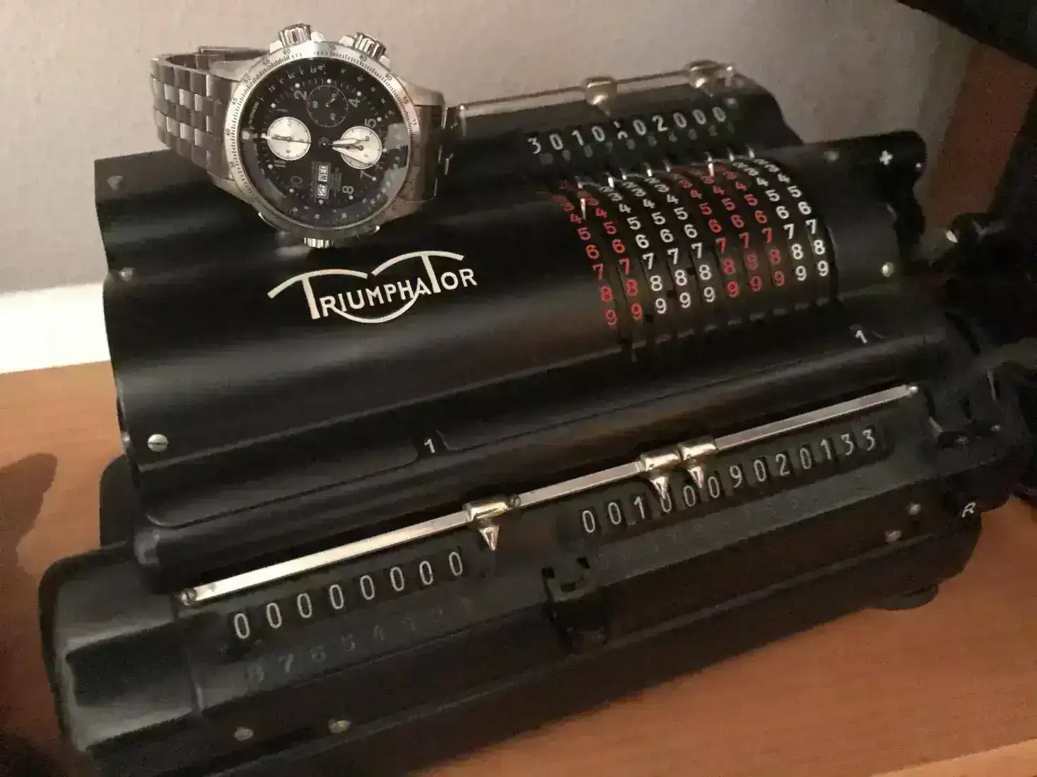 ¡ Qué maravilla !Participo con esta sumadora Webb de finales del Siglo XIX la cual consistía de solo 2 ruedas que engranaban y solo permitía hacer sumas usando el lapiz metálico incluido, el resutado aparece en la unión de las dos ruedas. El ejemplar de la foto estuvo en las célebres minas de Potosí para los cálculos de jornales de los mineros siendo de las primeras calculadoras mecánicas que estuvieron en Bolivia. El reloj de bolsillo con la función de cronógrafo tiene un calibre Lemania 19NP, en la esfera muestra Ferrocarril Z.H & Cia. lo que indica se usó en el Ferrocarril de Zafra a Huelva y luego llegó a Bolivia donde trabajó en el tramo ferroviario La Paz - Oruro.