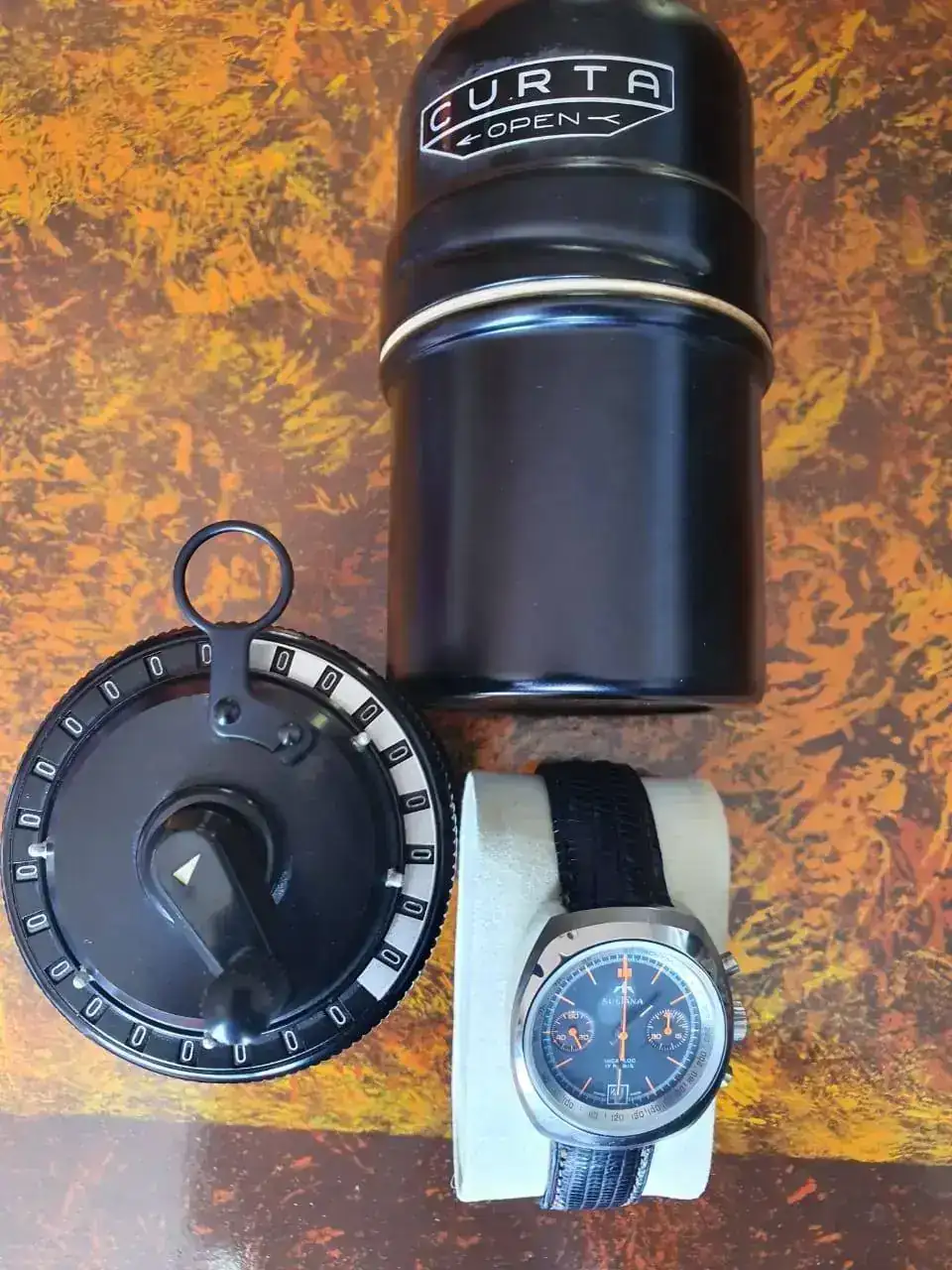 Madre mia una calculadora Curta, eso no se ve todos los dias. Con todos mis respeytos me quedo con loa CURTA antes que el reloj .Incluyo también la que se considera el santo grial de las calculadoras mecánicas, la ultra famosa Curta Tipo II (mejorada y con más registros en comparación al Tipo I), diseñada en los campos de concentración de la segunda guerra mundial por Curt Herzstark junto a un cronógrafo a cuerda Sultana que monta un calibre Valjoux 7734 con 17 joyas el cual utilizaban marcas de solera como Breitling, Tudor, Heuer, etc.Ver el archivos adjunto 917168 Ver el archivos adjunto 917169