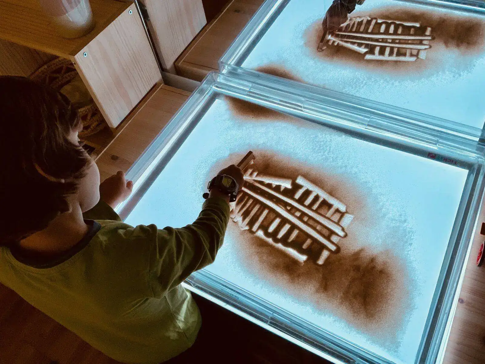 Tremendo artista 👏👏👏Buenas tardes, hoy se asoma por aquí Asier (mi hijo mayor, 4 años), ahora mismo jugando con arena y una tabla de luz.