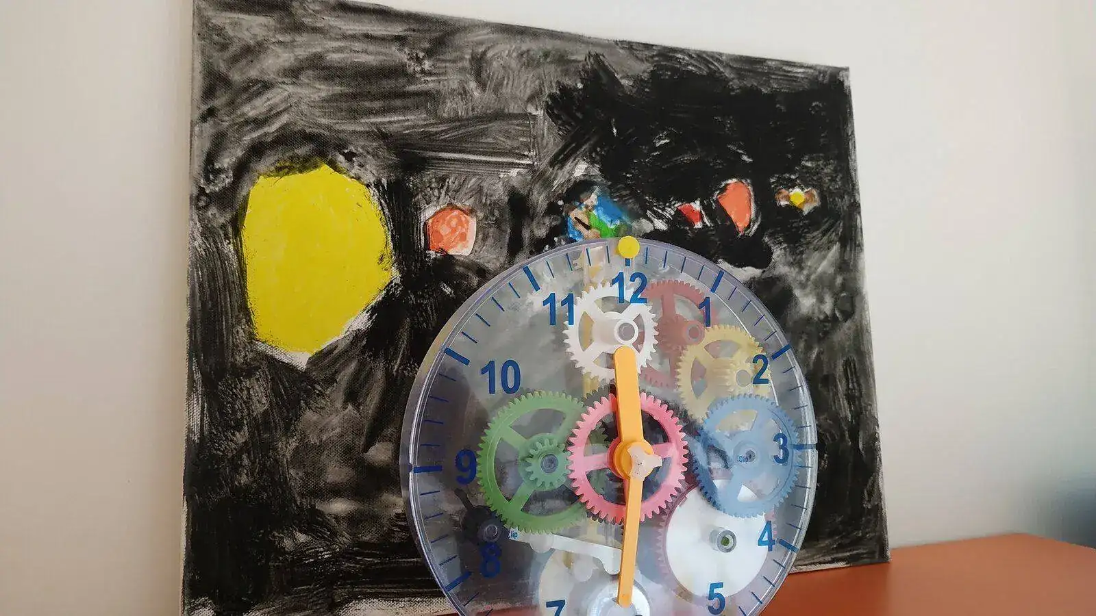 Me chifla el arte infantil, ell@s no tienen barreras ni prejuicios.Pues ahi va mi aportacion, arte infantil y reloj para aprender como funciona un mecanico de verdad, valido para niños y adultos....