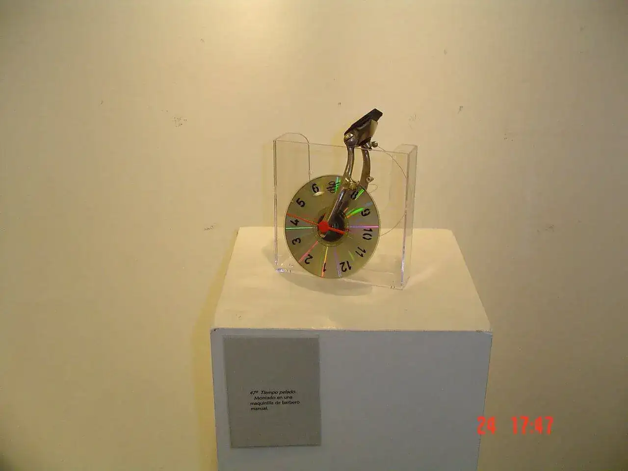 en vez de felicitarme me pego la bronca.Jope, alucino con todo esto, no conocía la historia.Es una sensación agridulce, vender toda la colección, pues ya que al no, disponer de obras no hay oportunidad de hacer nuevas exposiciones, y más aún cuando se enteraron los del pueblo a través del diario, de la comarca, me pegaron la bronca por vender los relojes, las esculturas, y cuentos, eso si antes se los ofrecí al ayuntamiento para iniciar un museo, y pedir donaciones para el mismo, ya que Montcada en su día tuvimos la ubicada en el municipio la fábrica de relojes Hubner (Tres pinos), donde empece con mis primeros pinitos, pero mi propuesta no fue aceptada, y las próximas exposiciones, entrevistas y publicaciones, fueron anuladas una detrás de otra, junto con las rupturas y relaciones de trabajo, y la que más dolió, no fue la que me dijo un cliente, te libras porque estamos en otro tiempo, que si no ahora mismo te fusilamos no en la que me negaron el pan y la sal diciéndome no, no queremos trabajar con un loco.