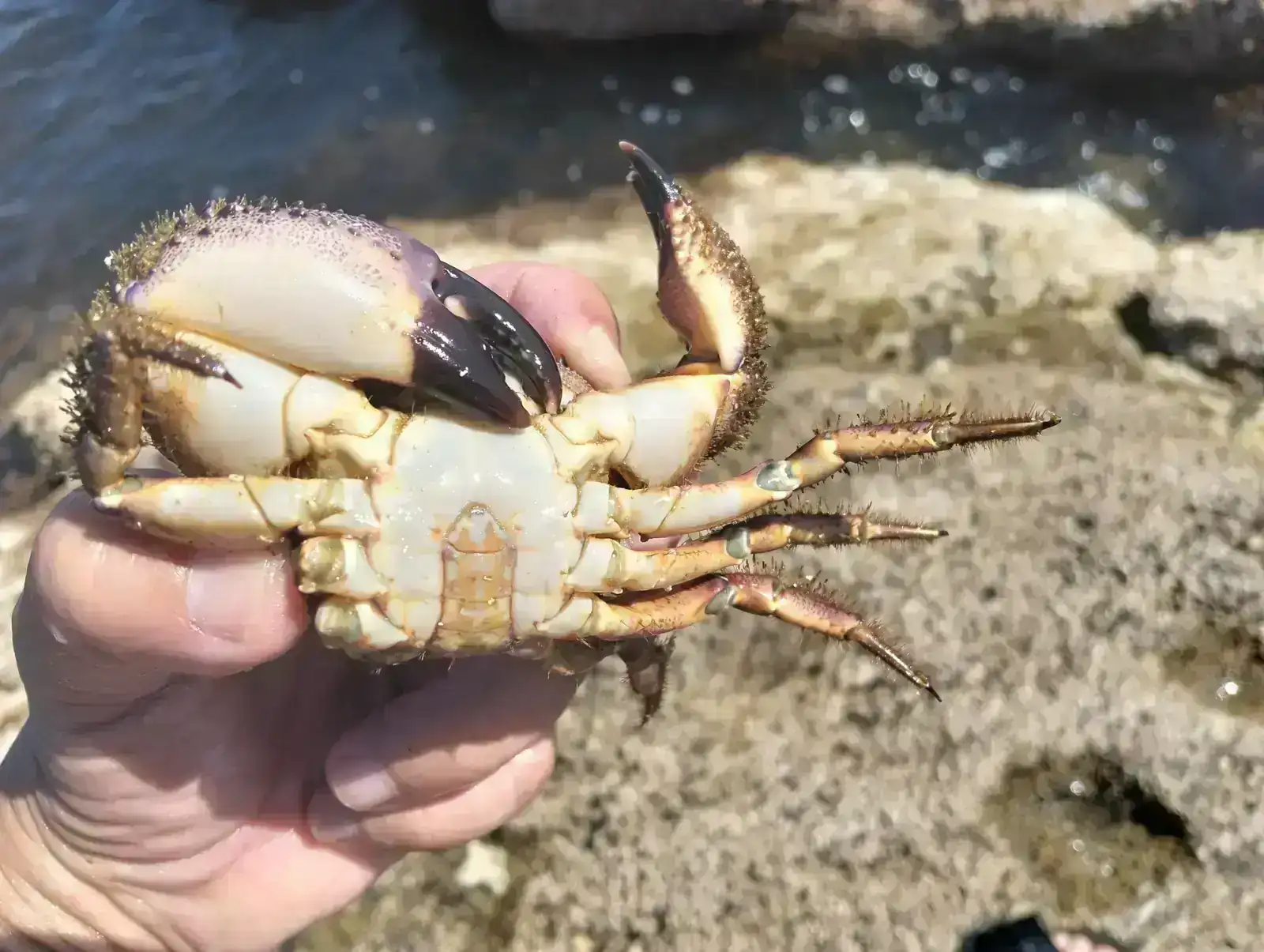 Muy bien citado el detalle, por que si, para los que no lo sepan la "cola" de la hembra es bastante mas ancha para sujetar y proteger los huevos antes de eclosionar. La calidad de la carne de la hembra es superior a la del macho y los caparazones están mas llenos, luego a la hora de elegir en la pescadería o en el restaurante unas nécoras tomar buena nota.Seguramente lo sabéis, este es un cangrejo macho, en esta foto se ve el colgajo abdominal que es estrecho, mientras en la hembra es más ancho.