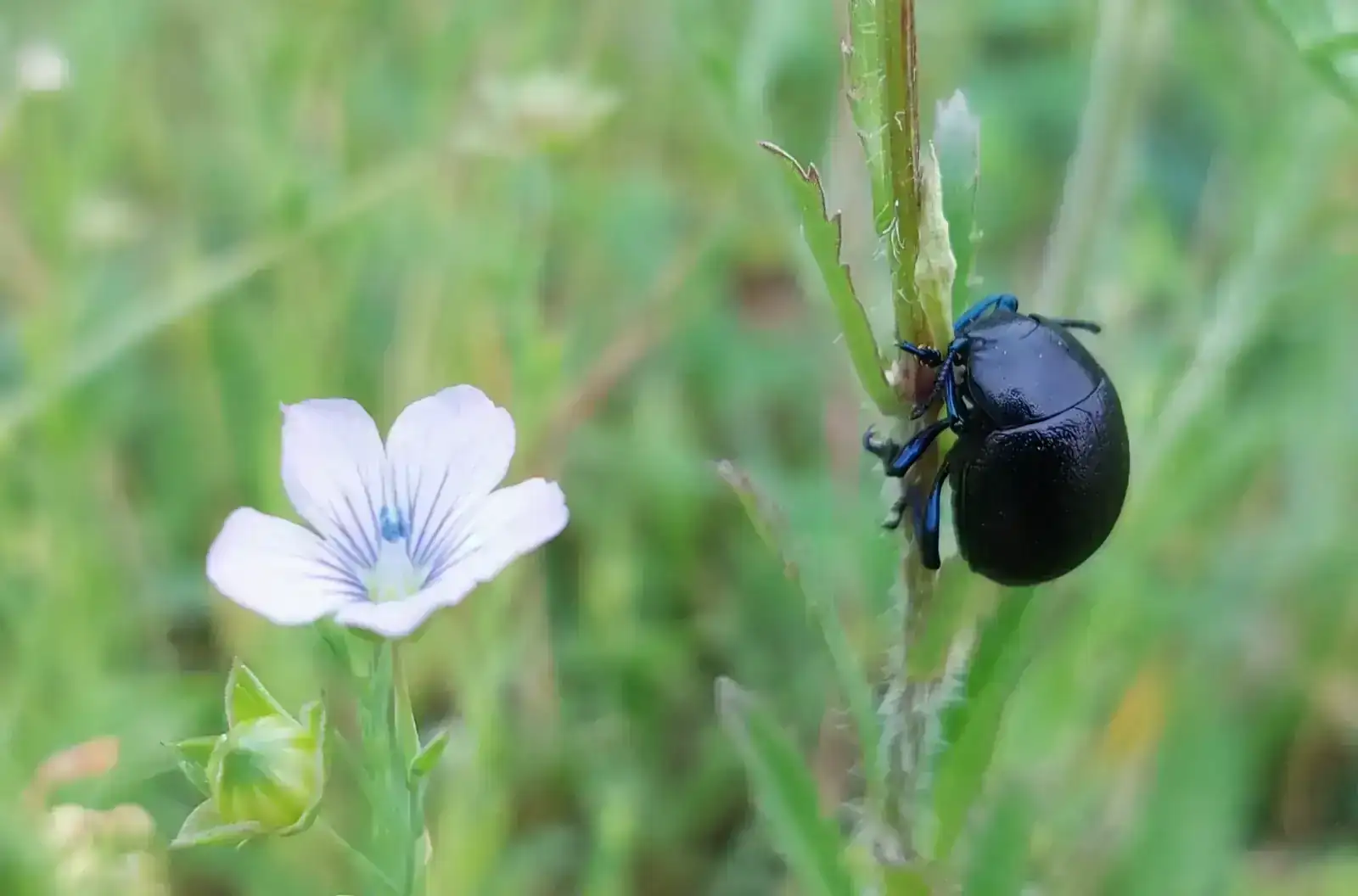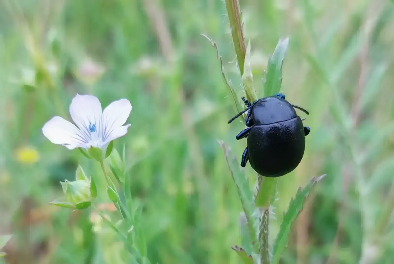 Bonito escarabajo. Me está despistando el azul metálico de las patas.