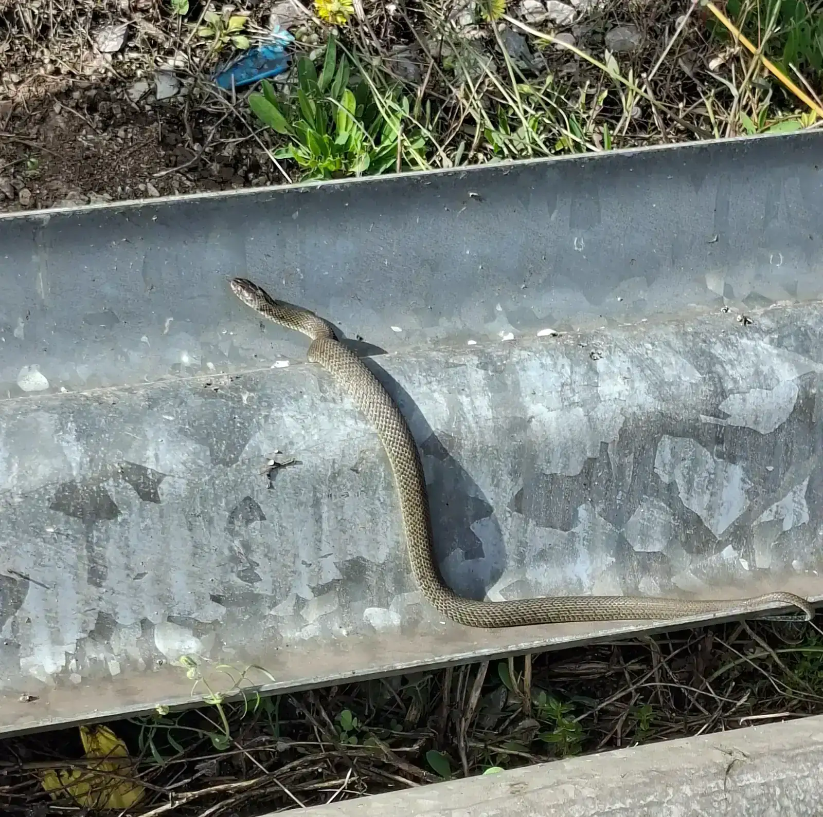 No es una víbora, con un mínimo margen de duda, es una culebra de esculapio, como todas las que tenemos en la península esceptuando la víbora, inofensiva para nosotros, suelen ser bastante grandes y no tienen ningún peligro para nosotros, quitando el miedo que producen.Hoy nos salió esto cuando quisimos quitar unos quitamiedos, creo que es una víbora. Por motivos obvios no hay foto con el reloj al lado de la víbora