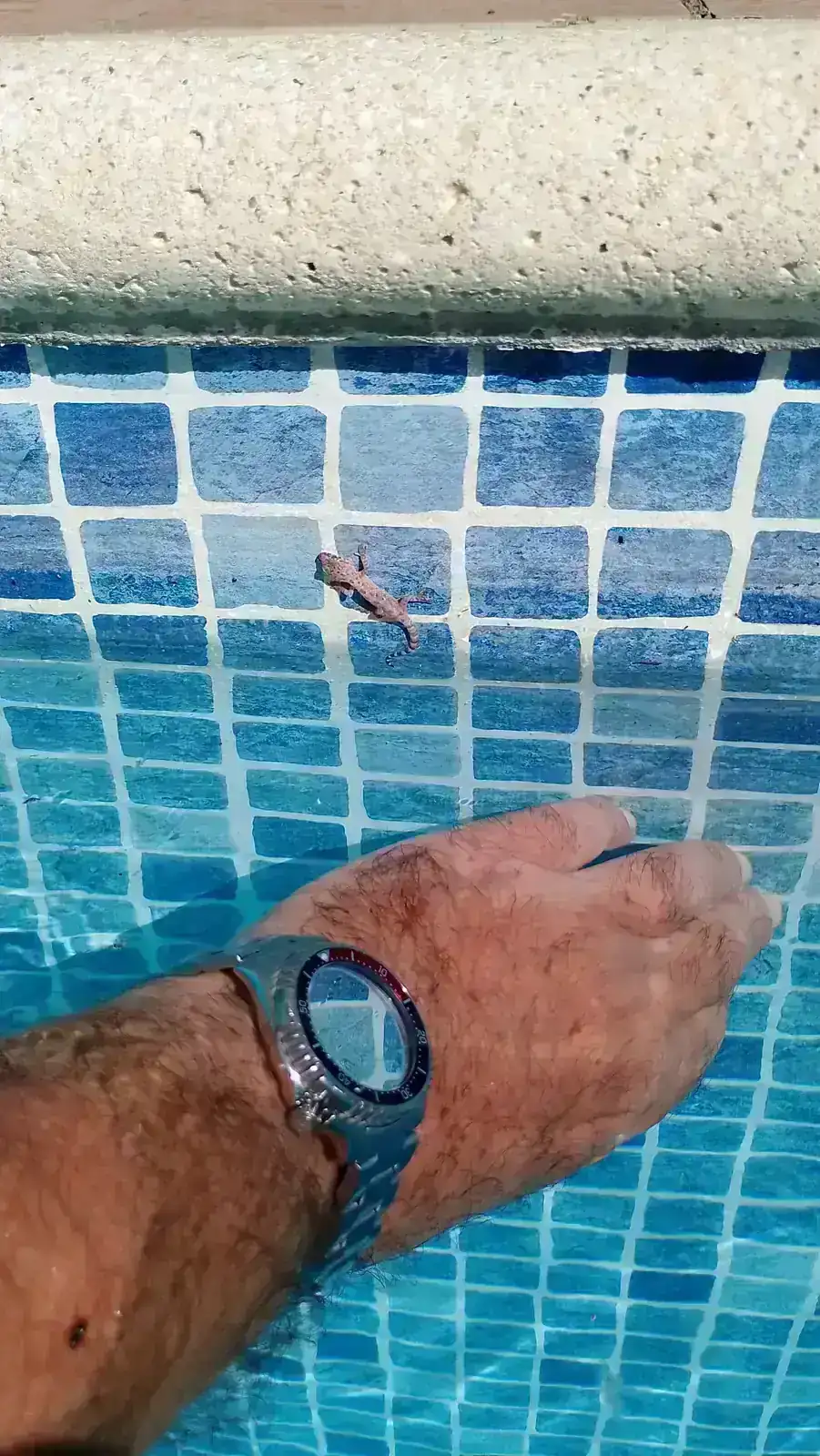 Los jóvenes es que no ven el peligro. Es la segunda vez que la saco de la piscina, en caso de que sea la misma. Espero que, cuando sea mayor, se acuerde de mí y se coma todos los mosquitos que vea a mi alrededor, y si están infectados con el virus del Nilo, mejor.