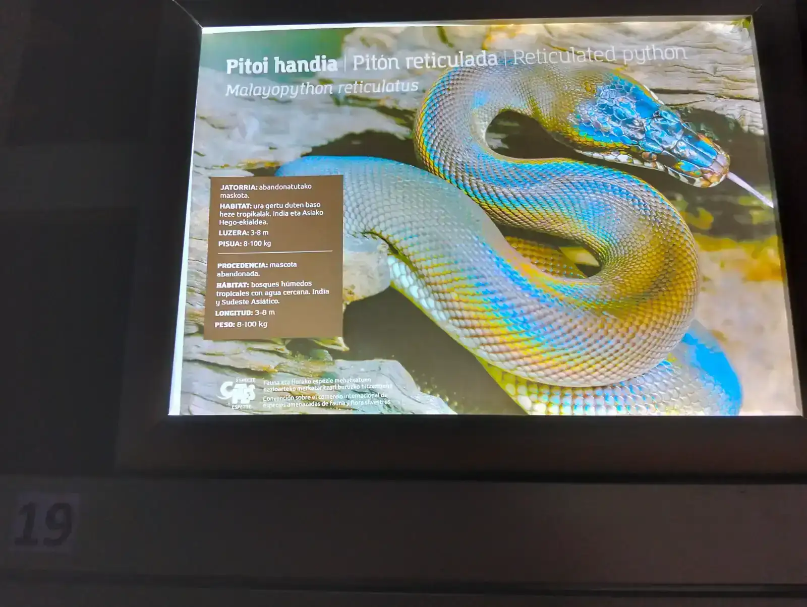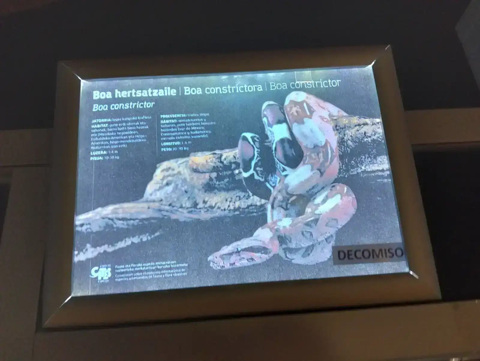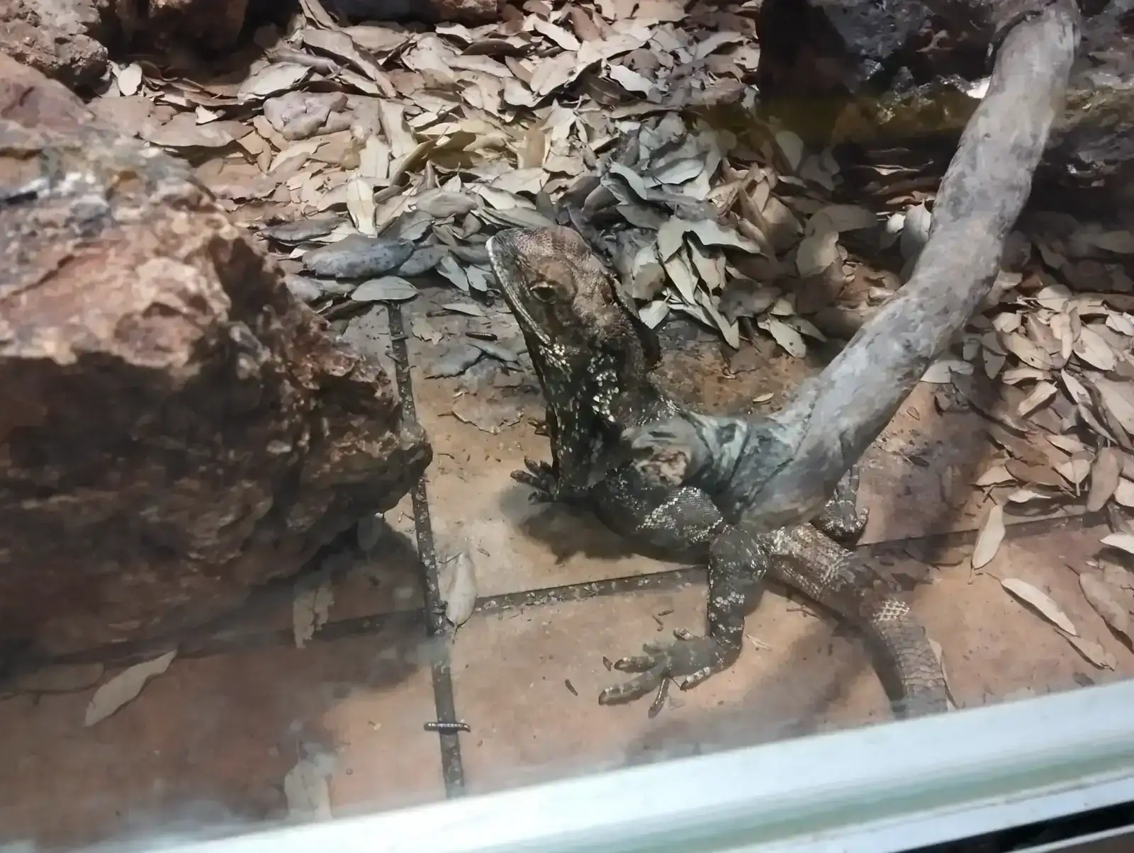 Lagarto de cuello volante, ha salido borrosa la foto del panel.