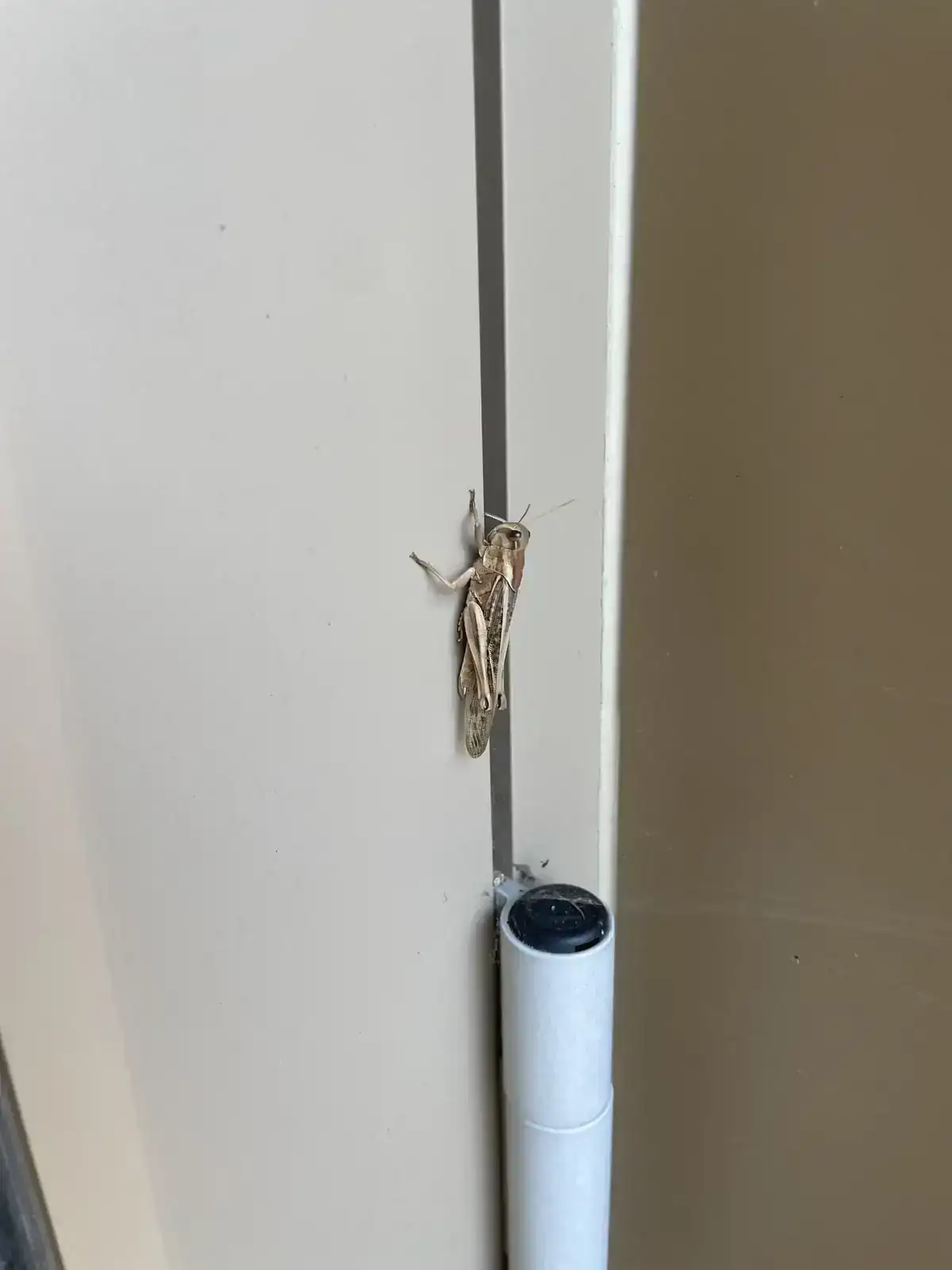 Pudiera ser una Locusta migratoria(langosta migratoria). Si es así, espero que no sea una avanzadilla del enjambre madre.![]()