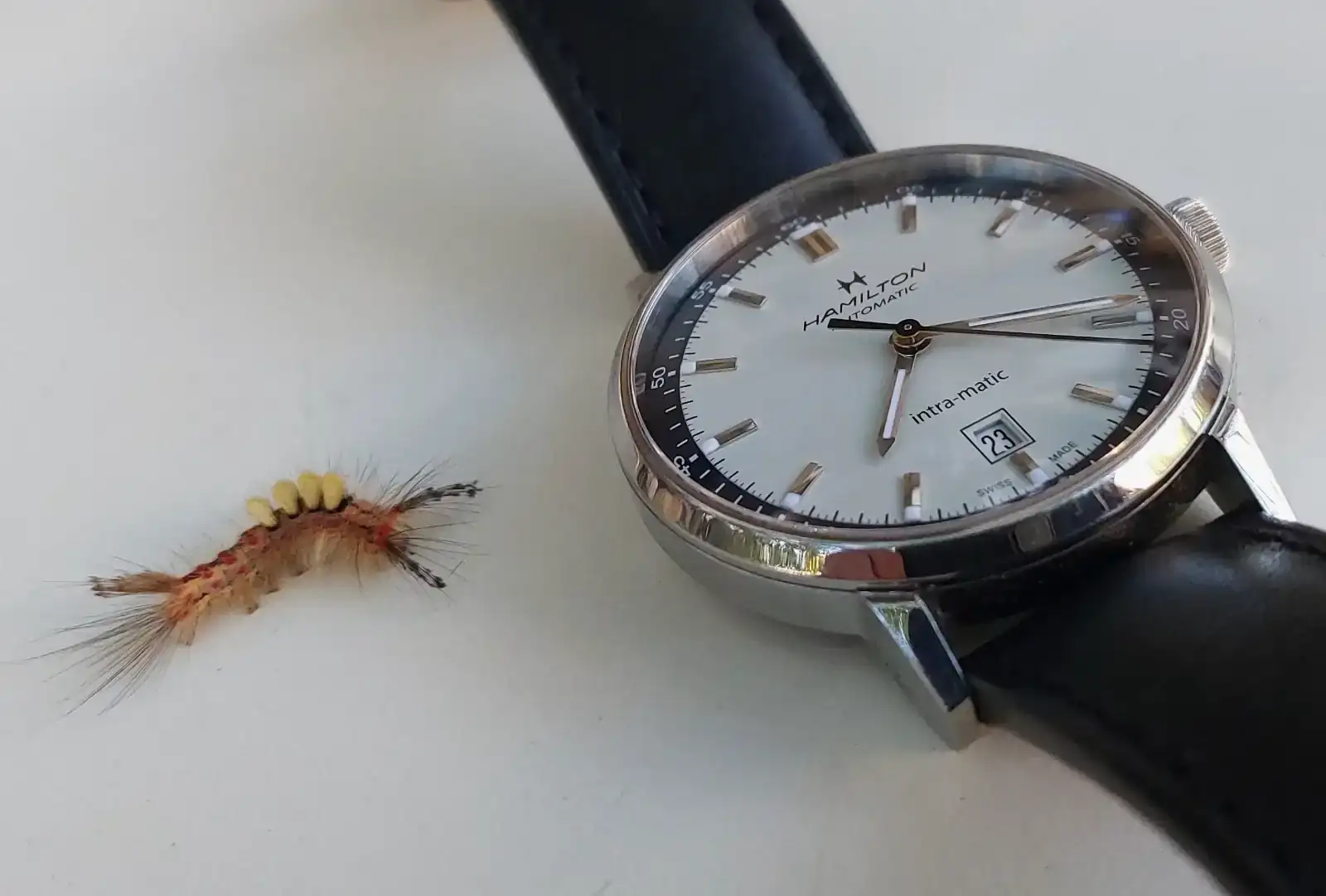 Una mala foto del reloj, era para el hilo de las flores...y vi esa cosa asquerosa... menos mal que lo vi, salvé de morir devorada a la planta en unos días.