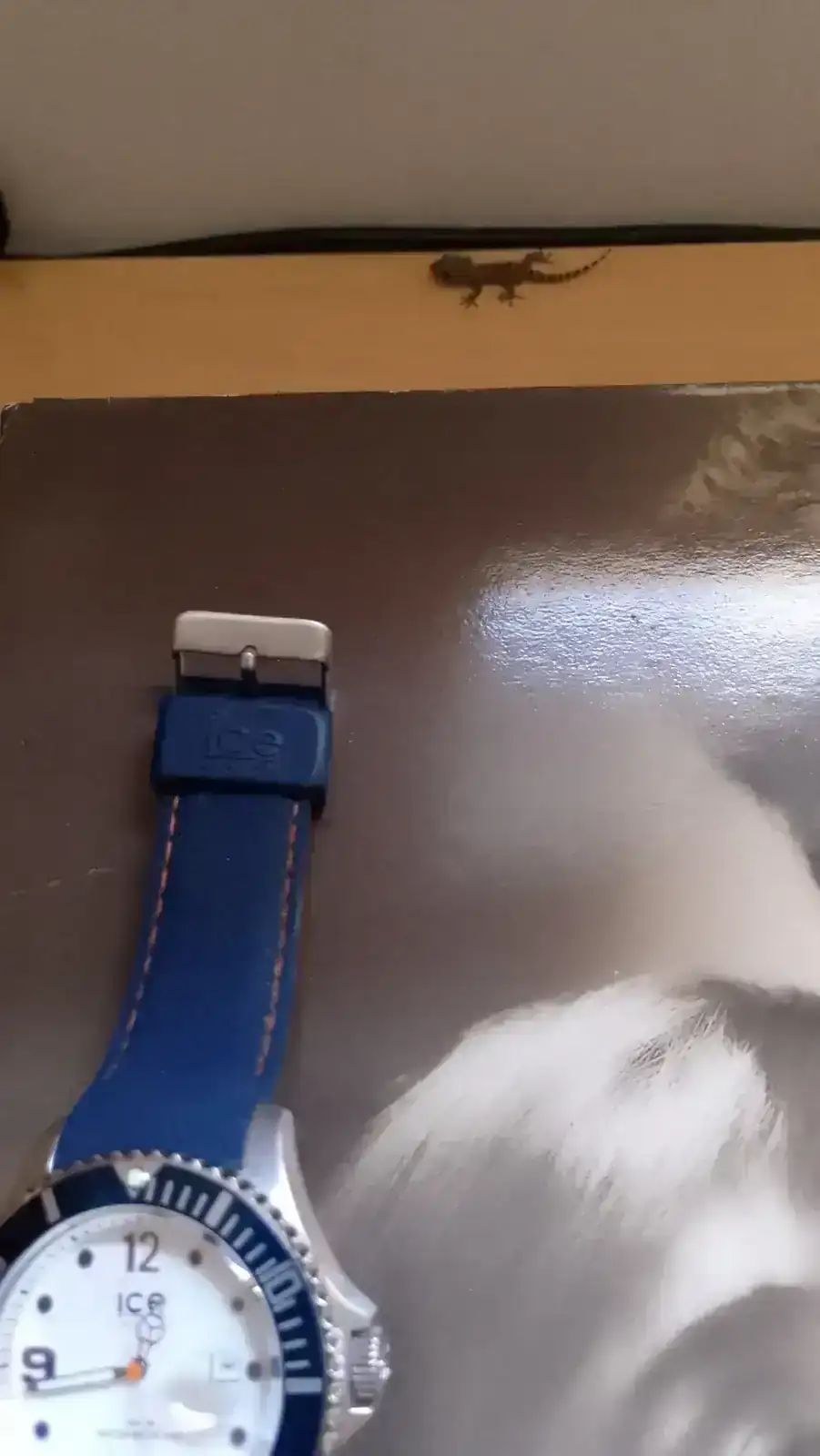 Preciosa, cuídala 😀.Mientras hacía una foto para el hilo "Relojes y música", veo que se me cuela una salamanquesa, de manera que me hago un 2x1.