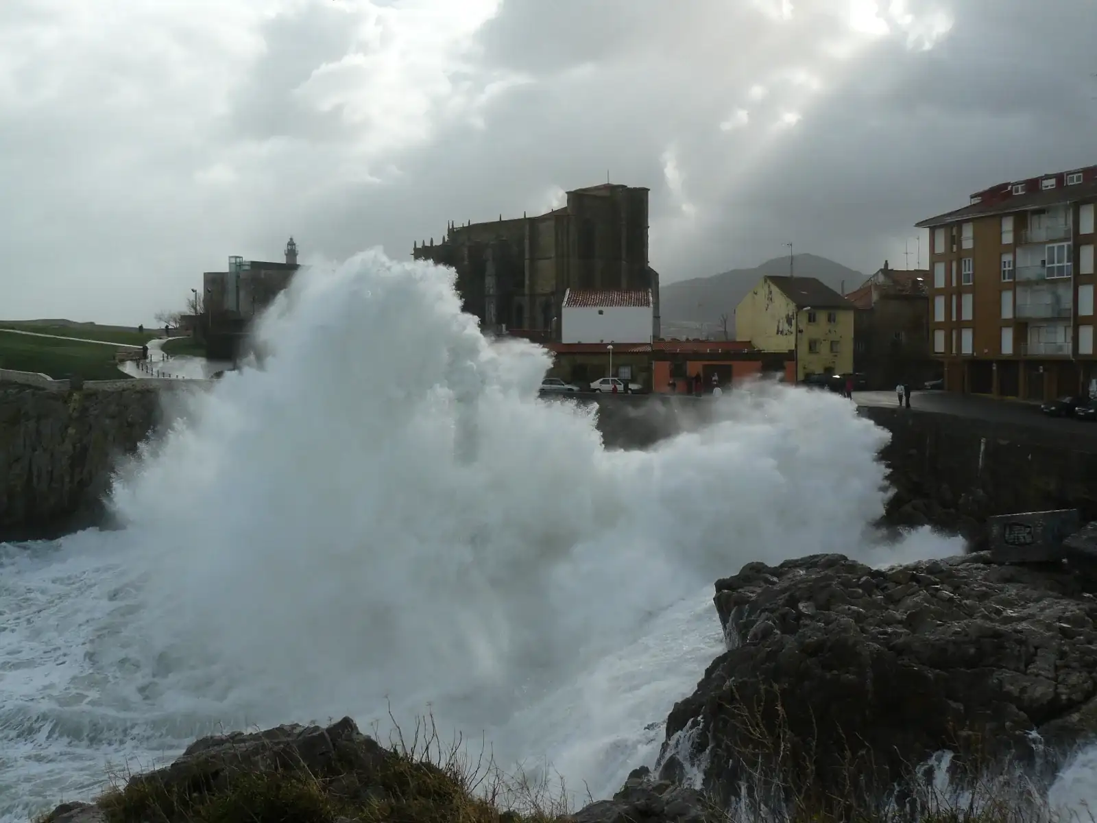 No encuentro alguna que tenía con la explosión de la ola por encima del arco y la espumilla a la altura del faro, antes te podías acercar, ahora lo cierran.