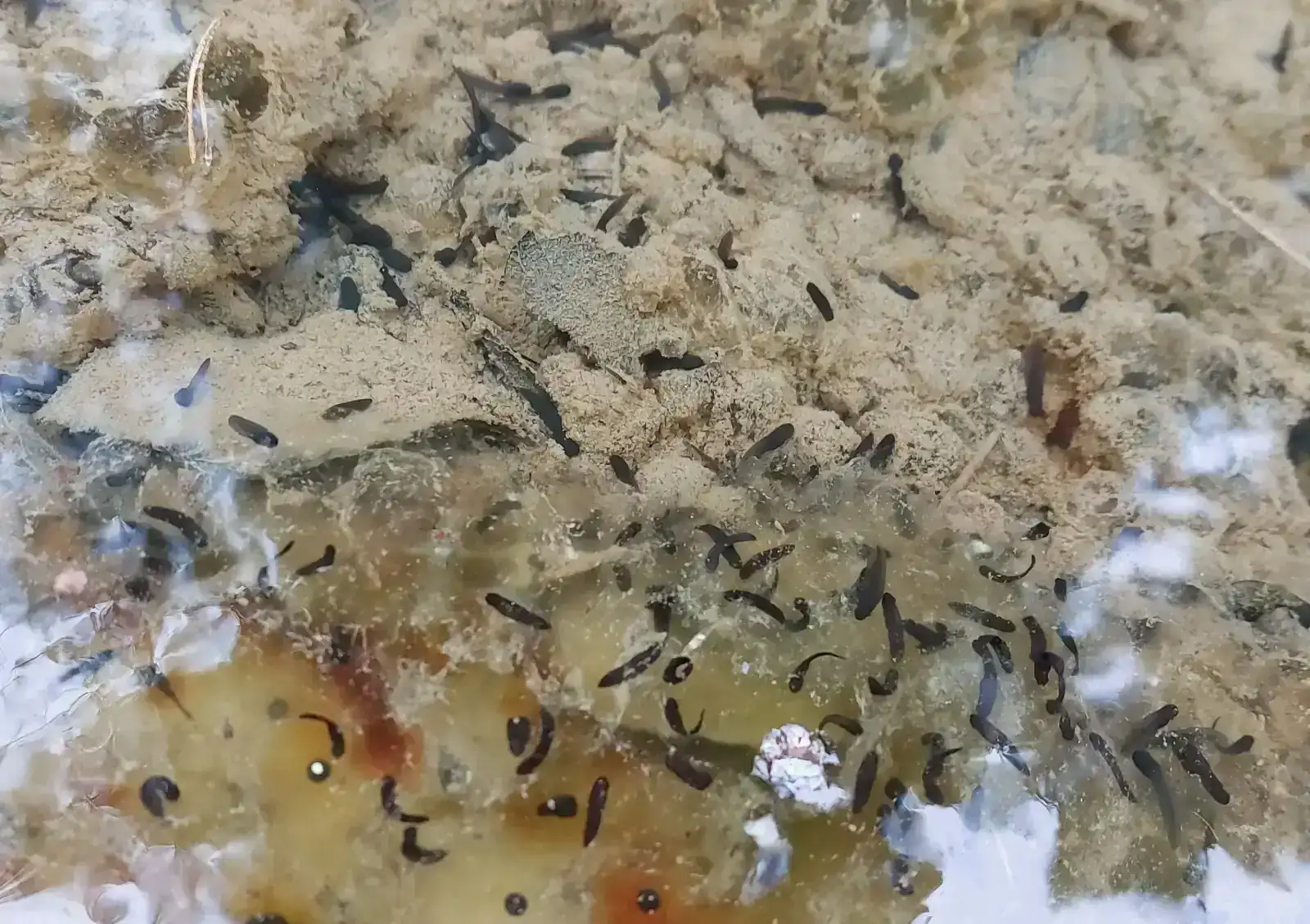 El mejor posado del día ha correspondido a esta pareja de rana bermeja (Rana temporaria), residentes en Gorgas de Alba.