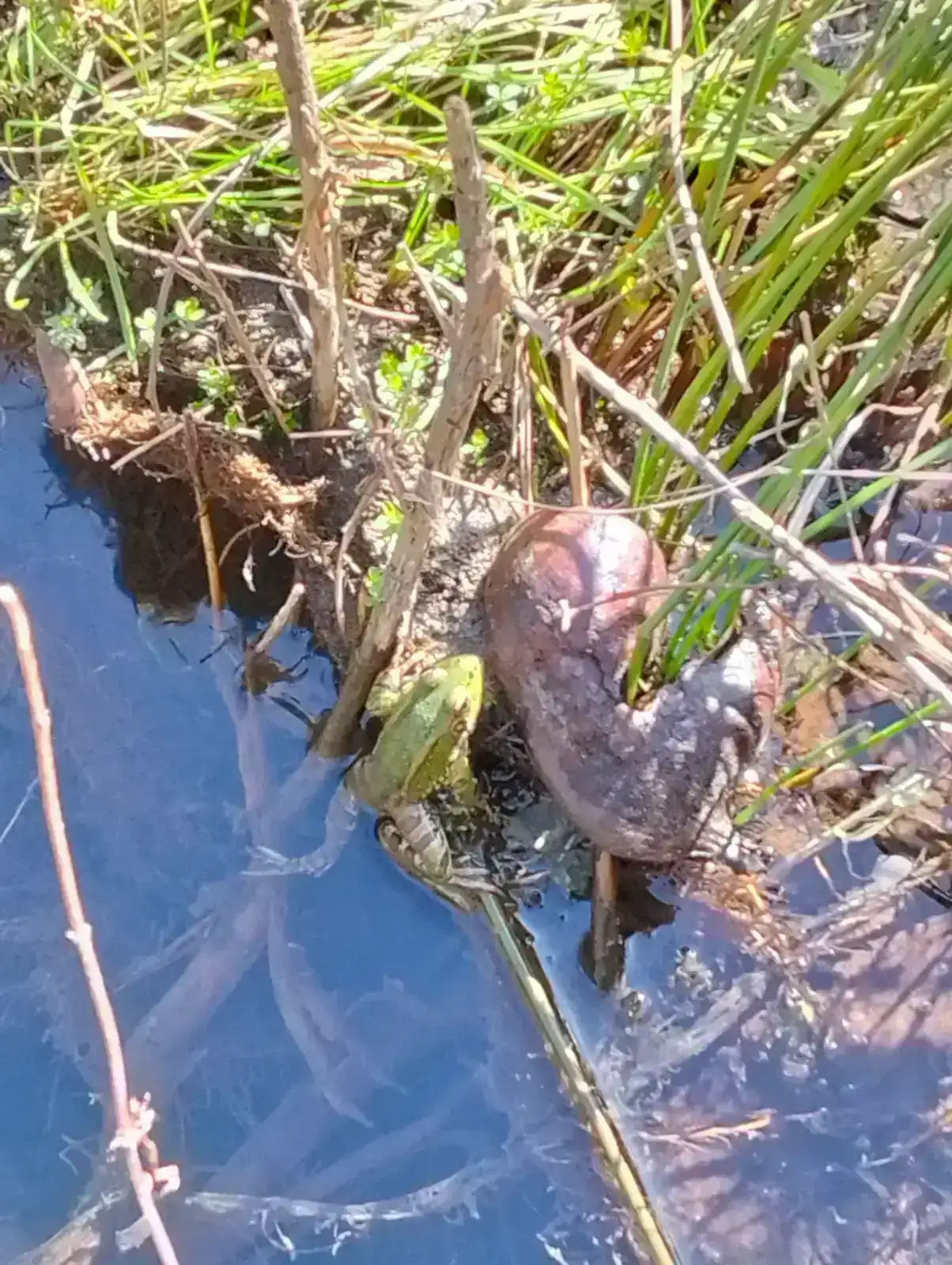 Diría que si, vamos la ranita de toda la vida.😉🐸Parece una rana verde común ¿No?. Me despista un poco que tenga esas dos líneas amarillas laterales y la ausencia de una central. Pero hay cierta variabilidad.