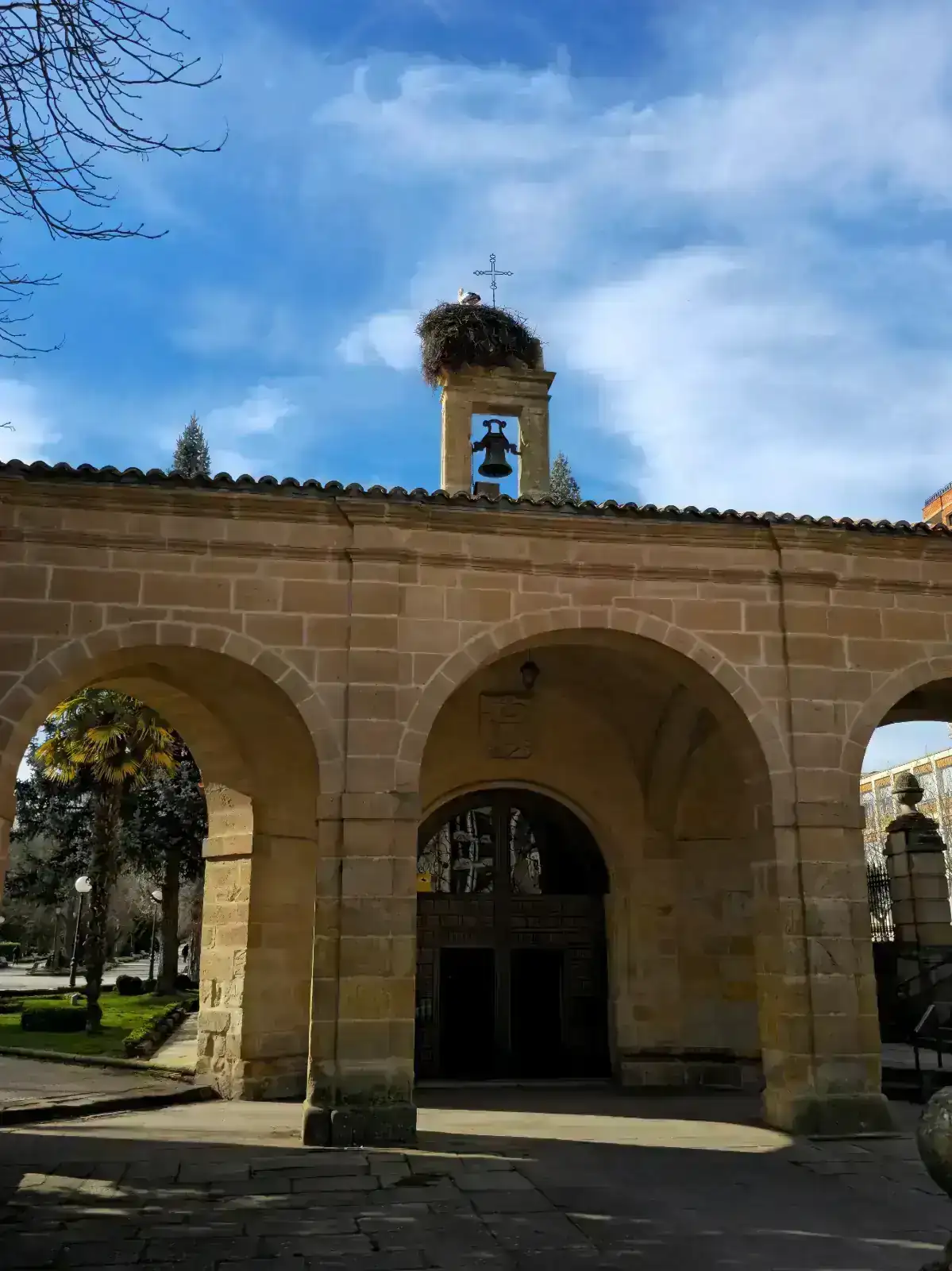 Una cigüeña en la espadaña de la ermita de La Soledad, en Soria.