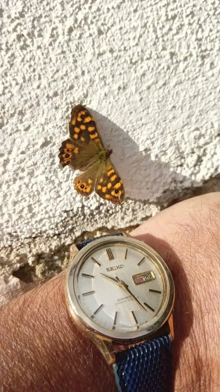 Ésta me la trajo ayer noche de regalito mi gata, este año me lleva traídos cinco o seis regalitos diferentes 😼. La empujó desde la calle ya que estaba la puerta abierta. Lo digo porque cuando recogí la mariposa, casi volaba y aparentemente no le había causado ninguna lesión, la revisé bien.