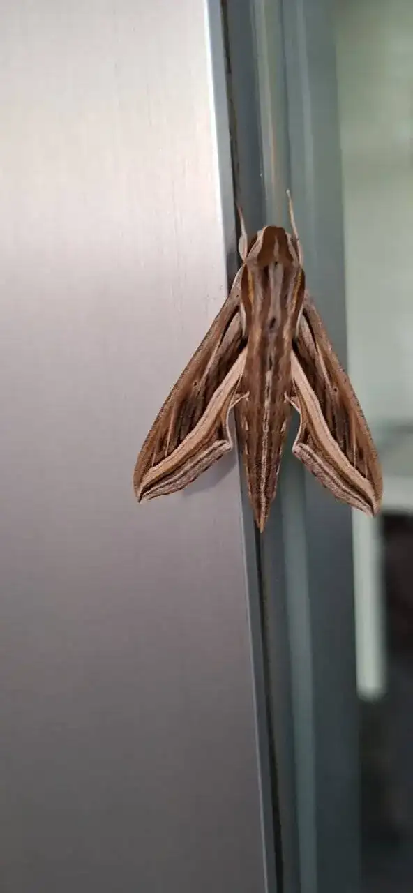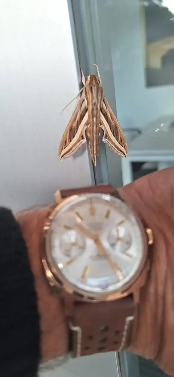 Qué bonito ejemplar de esfinge de banda plateada a esta altura de año, cuando debería ya de haber sucumbido o migrado.